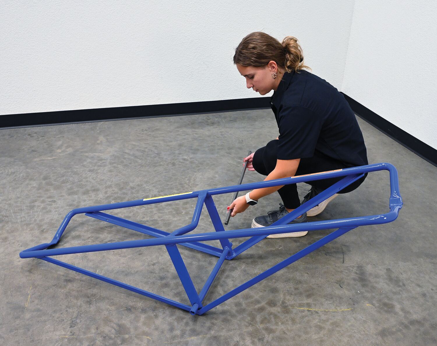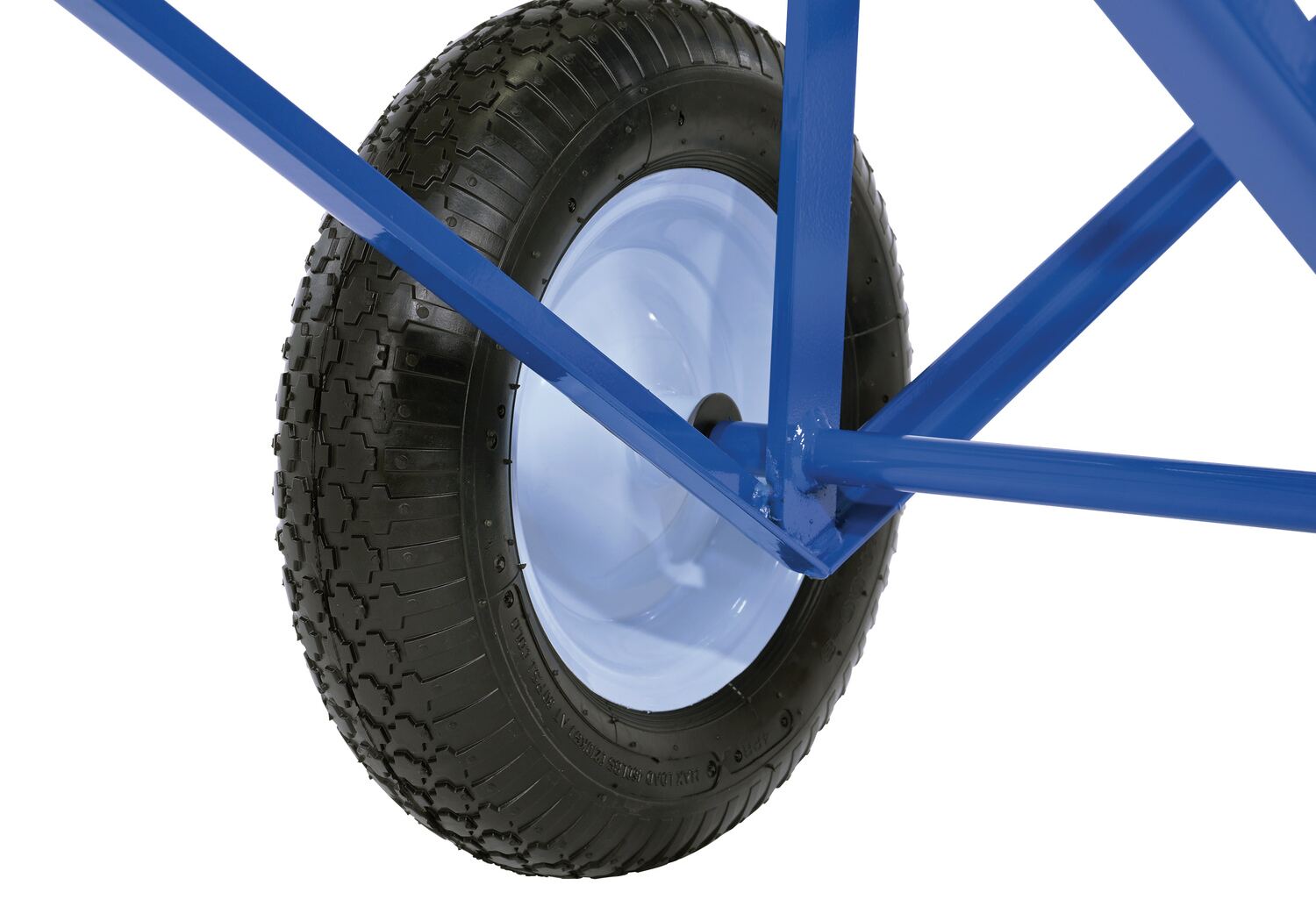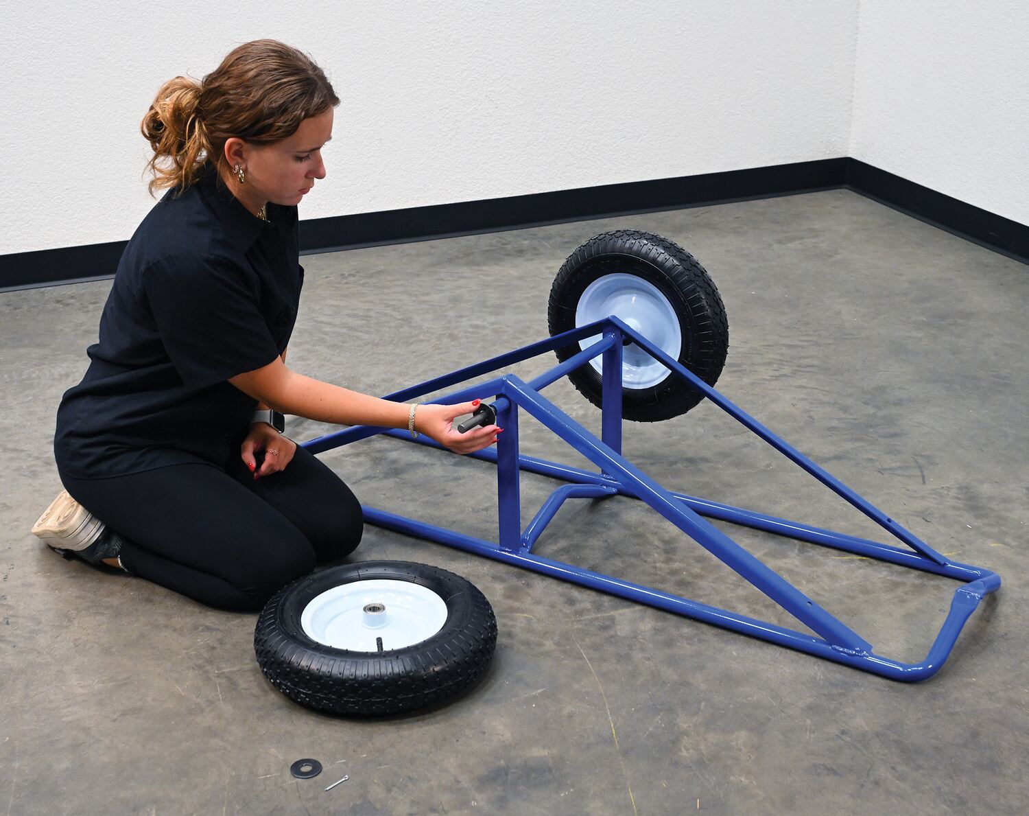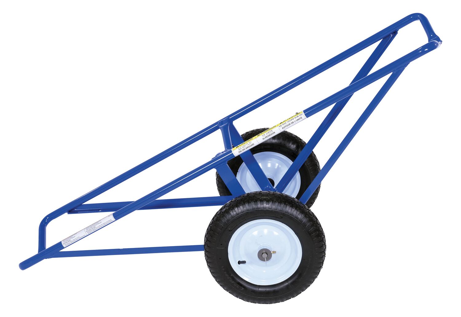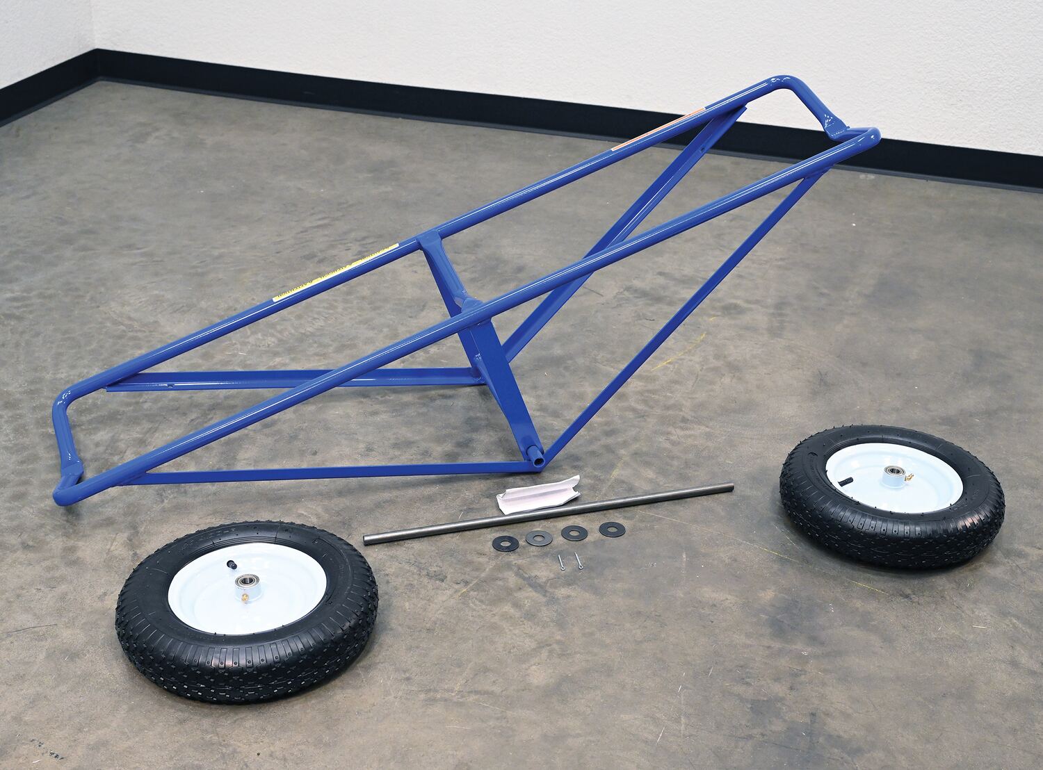 Each unit includes two 16" diameter by 4" wide wheels. Uniform capacity 500 lbs. Welded steel construction with baked in powder coat blue finish.