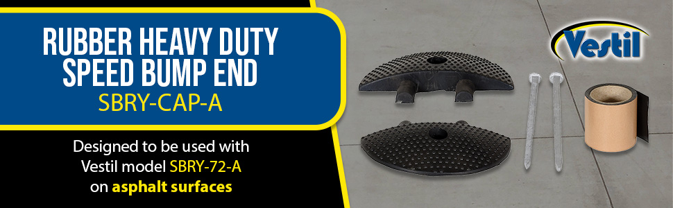 SBRY-CAP-A SBRY-CAP-ARubber Heavy Duty Speed Bump Asphalt End Caps BlackPackage Contents: (2) End caps, (2) asphalt spikes, (1) roll of butyl tape