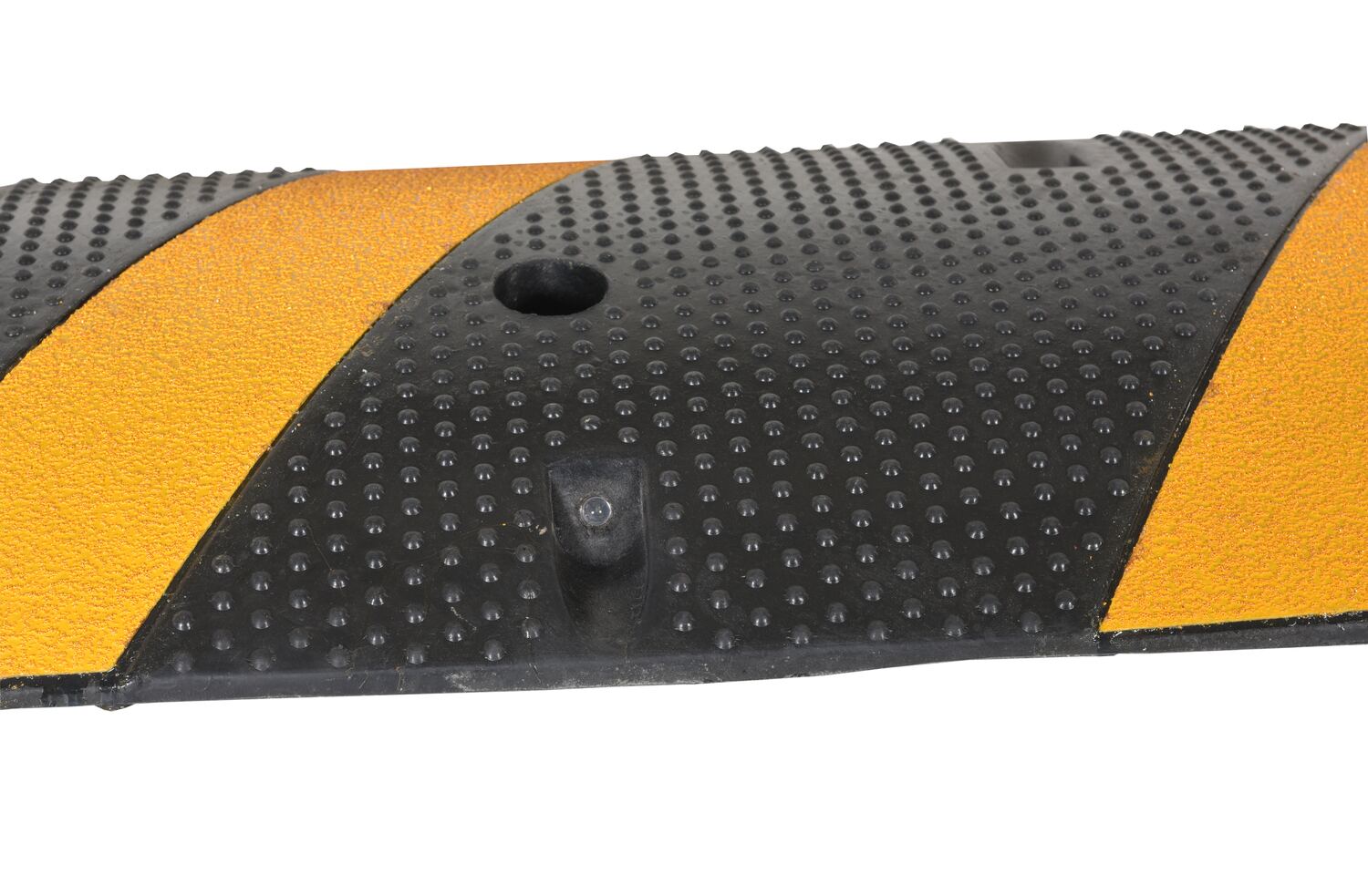 SBRY seriesHeavy-duty molded rubber construction for durability. Rubber includes UV stabilizer for longer life. Features five reflective yellow diagonal strips and "cats eyes" per side for better visibility. Four mounting holes per speed bump, hardware included. Maximum capacity is 40,000 pounds. End caps are available separately.