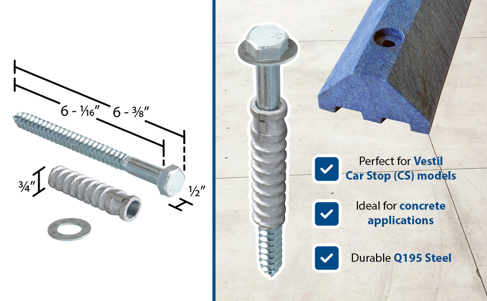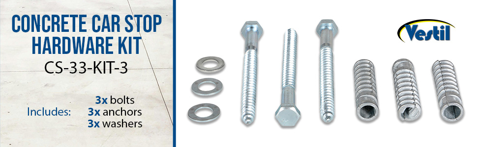 CS-33-KIT-3 CS-33-KIT-3 Steel Q195 Concrete Car Stop Hardware Kit 3 Pack Silver 30 Days Limited Warranty 2