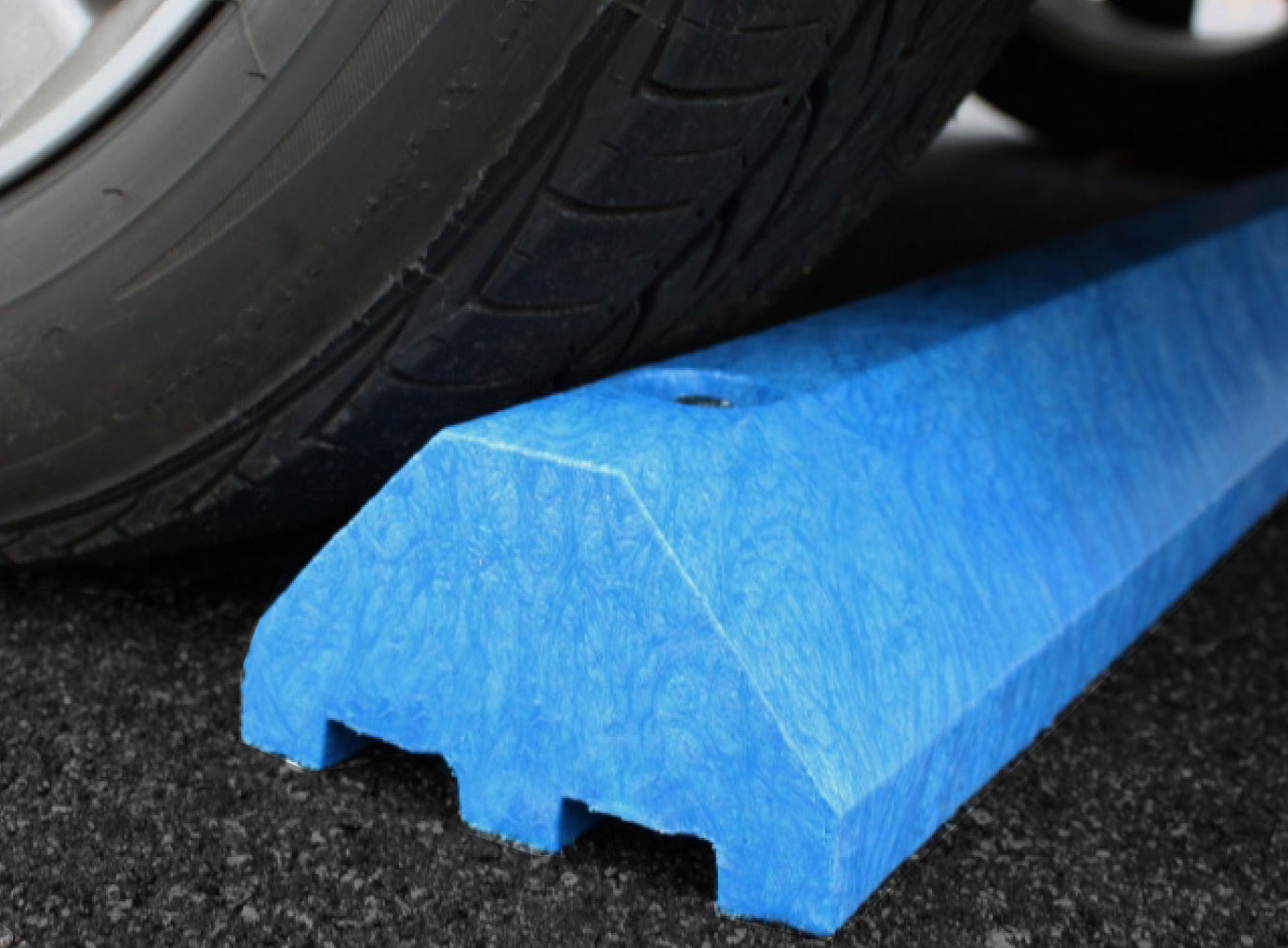 Made of solid (no channels) recycled plastic. High-visibility colors enhances driver and pedestrian safety. Solid parking blocks are chemically formulated plastic that offer durability, virtually indestructible, user-friendly, easy to install, maintenance free, lightweight but stable, chemical and weather resistant, UV stabilized.