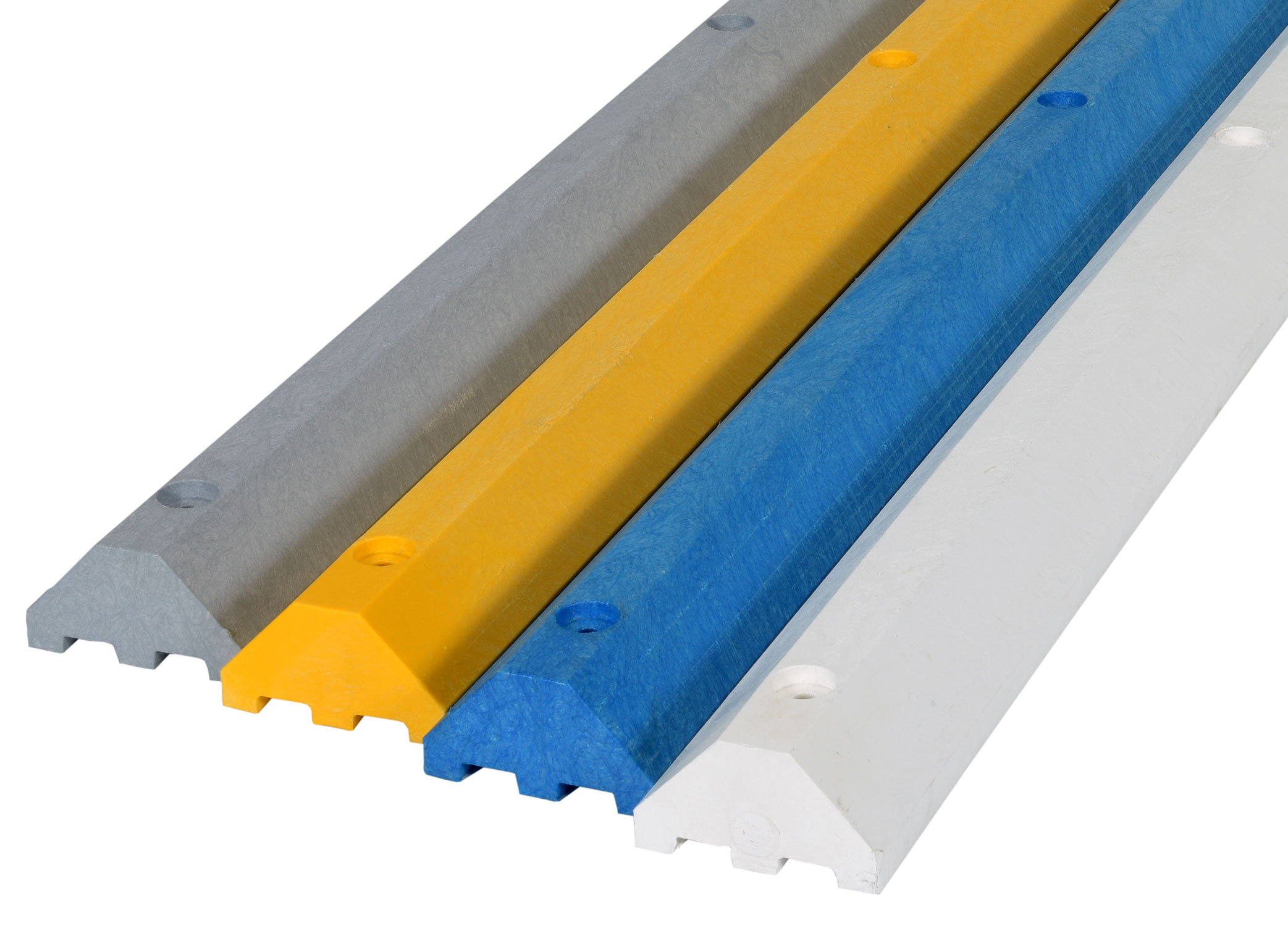 Made of highly visible recycled plastic. Units feature notched out bottom surface (channels) for laying hoses or cords underneath. Models included in the CS-TB96 series are designed for use with trucks and other larger tired vehicles.