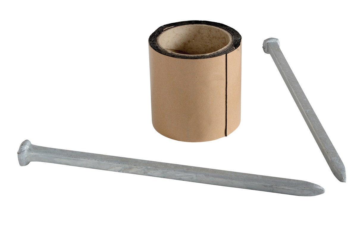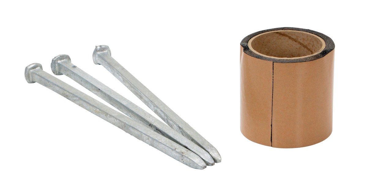 Asphalt kit includes spikes and butyl tape. The HD asphalt kit includes anchors and bolts. The HD anchor should be epoxied (epoxy not included) into the ground and then the speed bump is secured to that anchor with a bolt. The concrete hardware kit includes bolts, anchors, and washers. The glue down anchor plate kit includes anchor plates, T-nuts, bolts, and washers. Requires 2-3 ounces of either 2-part epoxy or heavy duty construction adhesive to the bottom of each anchor plate, which is not included.