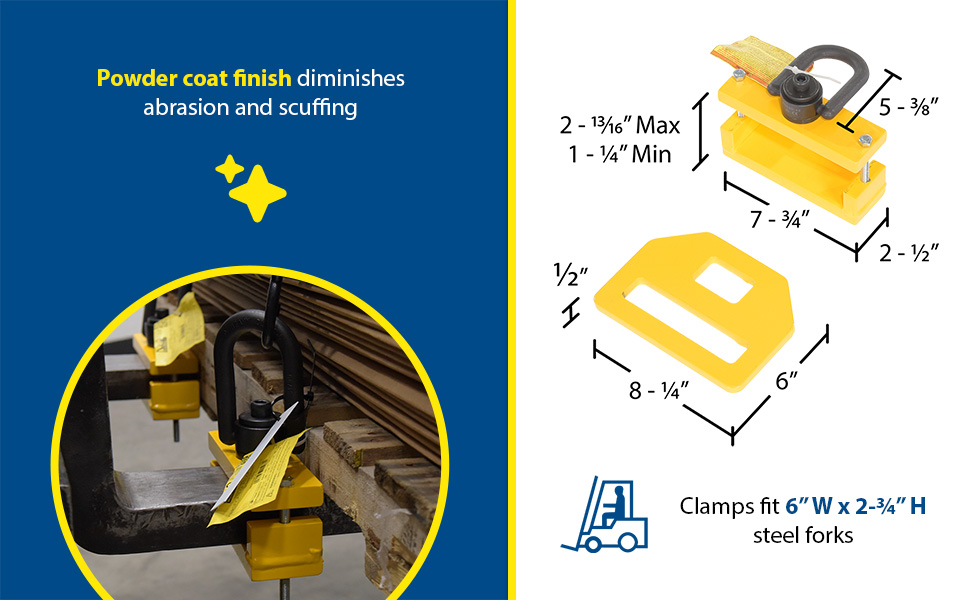 • Clamps To Fit Forks: 6"W x 2-3/4"H