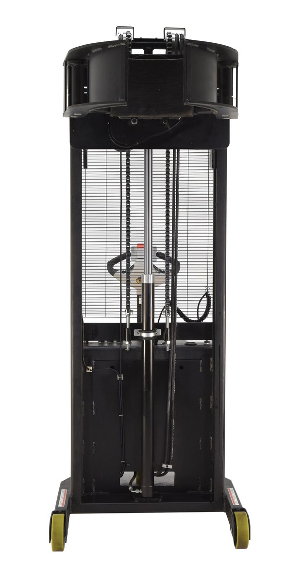 The fully powered vertical drum gripper/rotator is a great asset for the manufacturing and distributing industries. A walk behind design with a max unloaded speed of over 3 mph and a single handle control makes maneuvering into the desired position easy. The shortened length allows the unit to get into very tight areas where other lifting devices can't reach. An 800 lb. lifting capacity lets users transfer more material in fewer trips, maximizing efficiency. Long term battery charge allows for constant daily use without needless downtime. Two (2) 12V lead acid batteries. Integral battery charger and level gauge included.