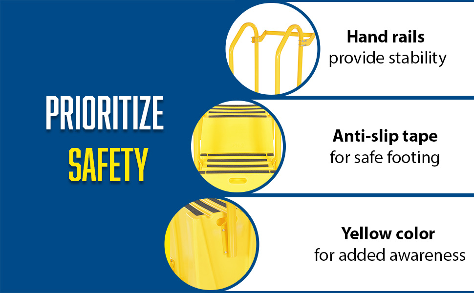 SPN-3-YL-HR-PO SPN-3-YL-HR-POPolyethylene Nestable with Handrails Casters 3 Step 500 Lb. Capacity YellowUniform Capacity (lb.): 500