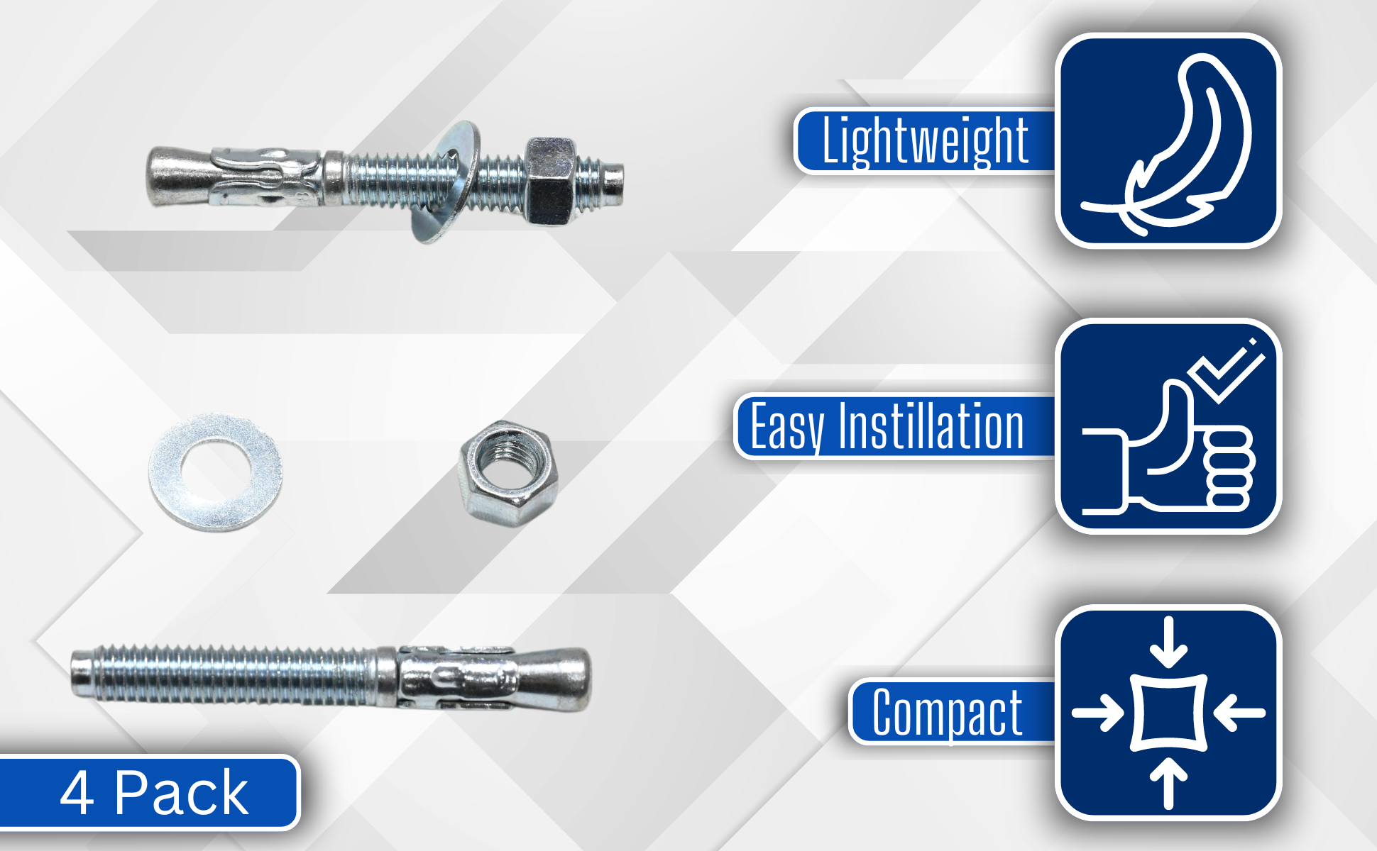 AS-584-4PK AS-584-4PKSteel Concrete Sleeve Anchor Bolts 4 Pack 5/8 In. x 4 In. SilverPieces in Package (qty.): 4