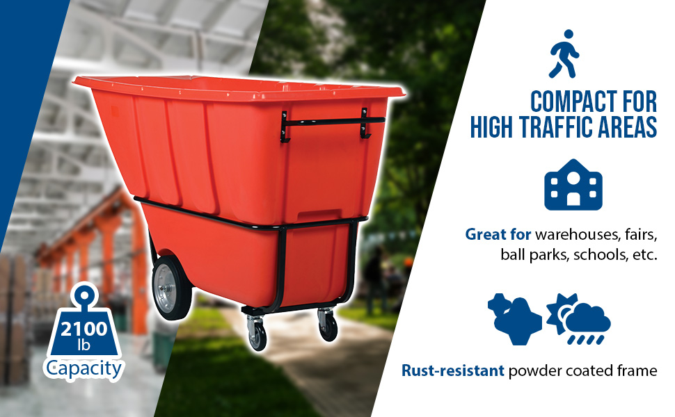 TDT-100-HD-RED TDT-100-HD-REDPlastic Heavy Duty Tilt Truck 1 Cubic Yard 2100 Lb. Capacity RedUniform Capacity (lb.): 2100