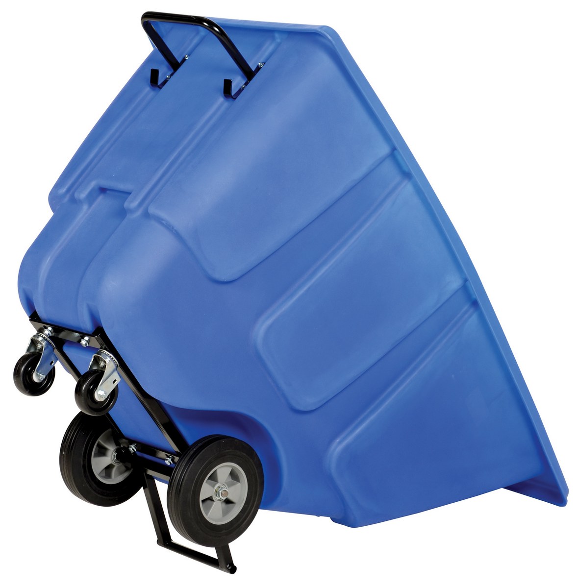 Durable plastic construction allows for collecting waste from multiple bins at a collective time. Great for warehouses, fairs, ball parks, schools, etc. Strong, one-piece molded polyethylene body with a steel base tip support and a balanced design to allow for simple dumping by one person. Easily portable on 2 large rubber wheels and two swivel wheels. Keep your waste out of sight in our medium duty and easy-to-move tilt trucks. Not for use with fork trucks.