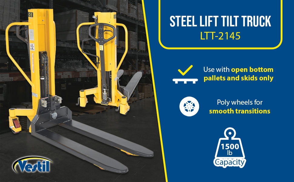 LTT-2145 LTT-2145Steel Lift Tilt Truck 21 in x 45 in Forks 1500 lb Capacity Yellow/BlackUniform Capacity (lb.): 1500