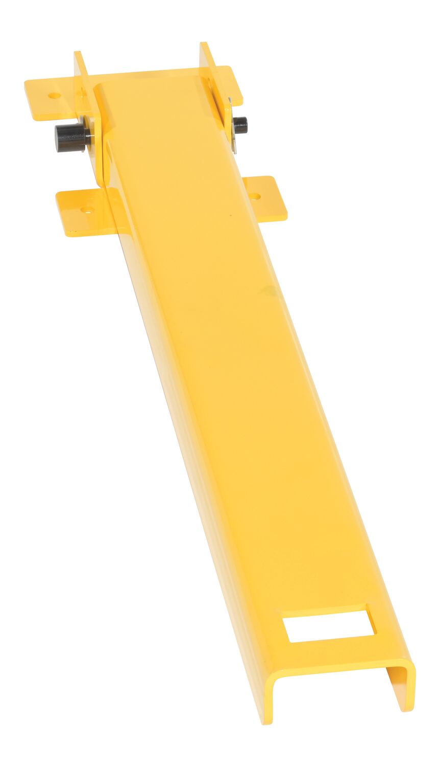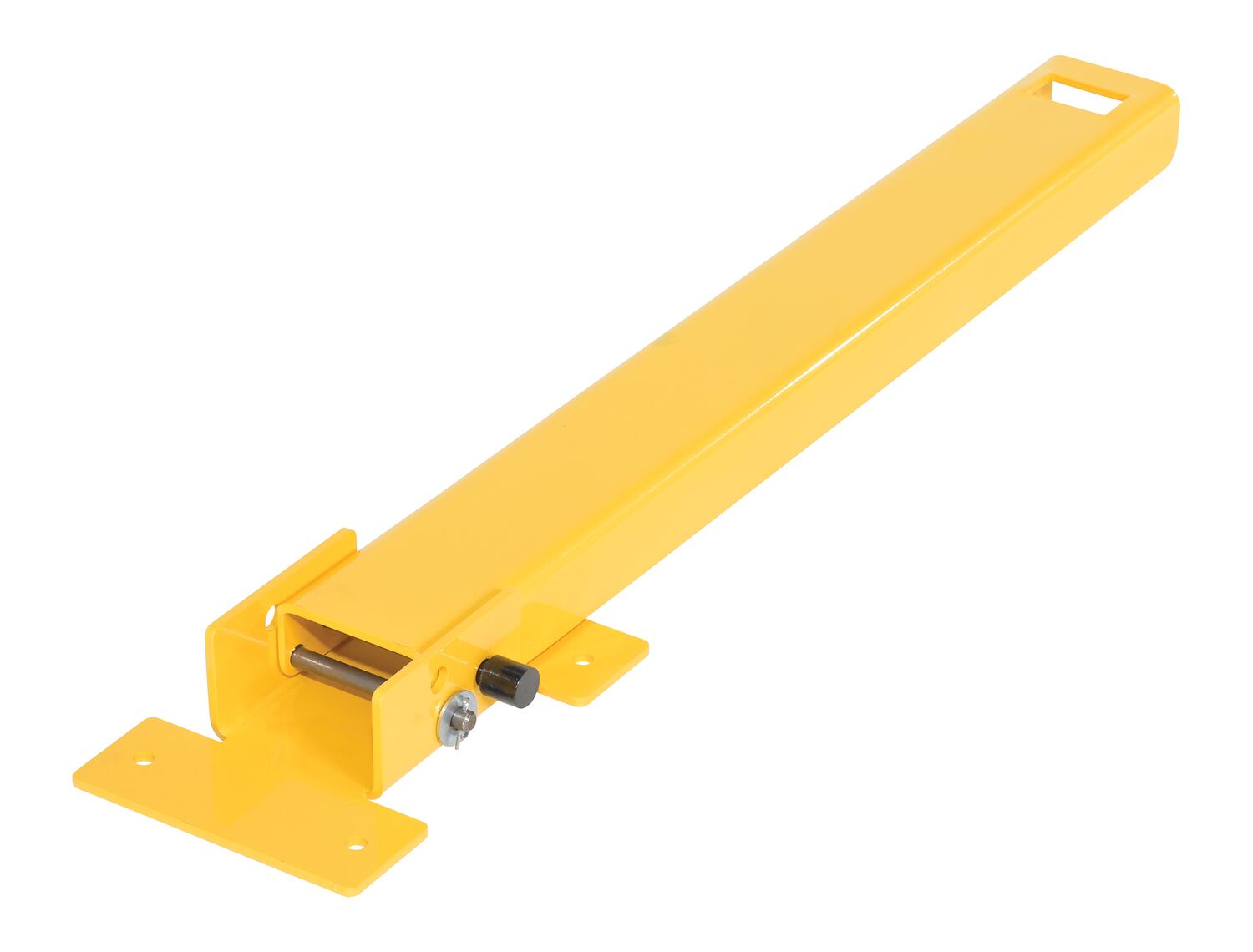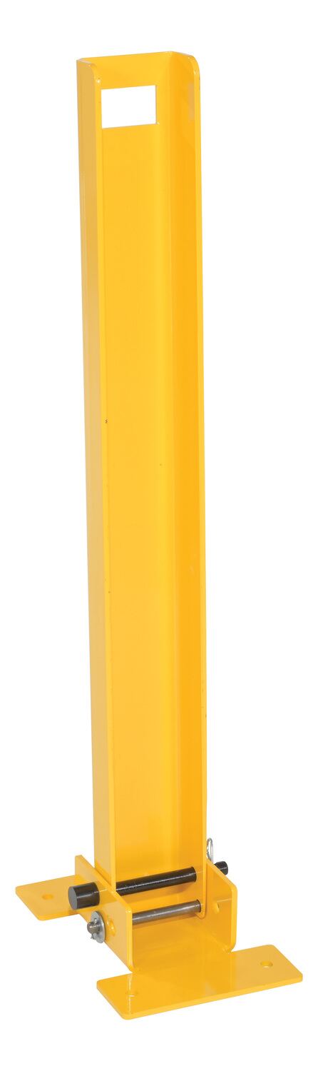 When designated areas need an extra layer of security, look for the two-way folding bollard. This bollard stands tall and can be locked in any position with a padlock (padlock not included). When padlock is removed, the bollard may be adjusted to allow access to the area. The bollard lays flat in the folded positon, taking up minimal space for straddling. Base plate must be lagged to ground for proper installation (installation hardware not included). Built of steel and finished with a yellow powder coat.