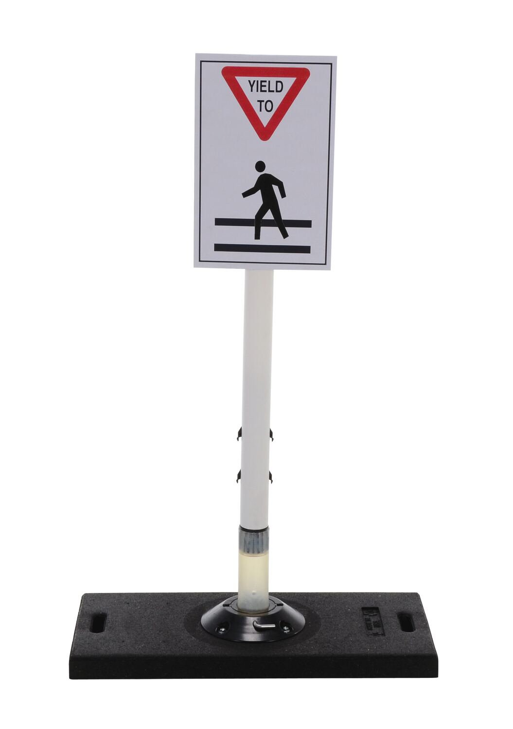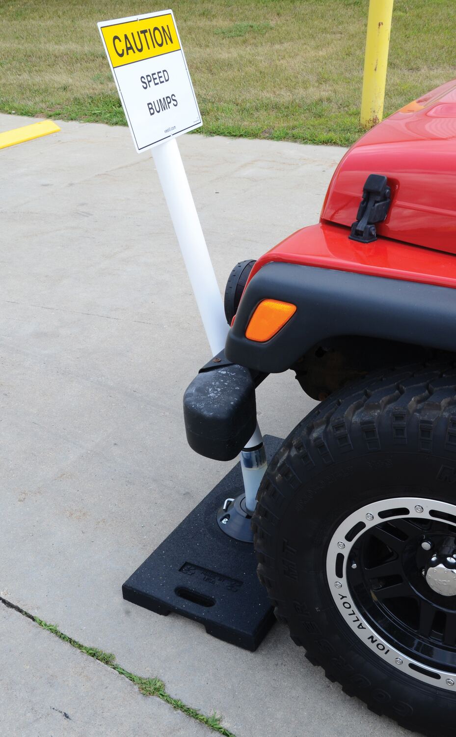 Sign Bases are perfect for parking garages, parking lots, retail establishments, school crossings, and high traffic pedestrian walkways. A lightweight and more durable option to steel, these signs are designed to take vehicle impacts and low speed roll-overs without causing damage to the post or vehicle. The recycled base, series FSP-BASE, is perfect for short term applications or when a rapid deployment is necessary. Permanent sign posts with circular bases can be anchored with 1/4" lag bolts (not included). Other post heights and signs are available, contact factory for pricing. For more bases and posts please see Protective Barriers section.