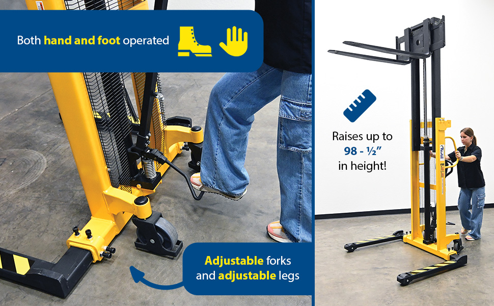 VHPS-550-AA-F72 VHPS-550-AA-F72Steel Manual Stacker Adjustable Forks/Legs 550 Lb. Capacity Black / YellowUniform Capacity (lb.): 550