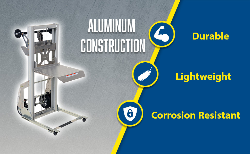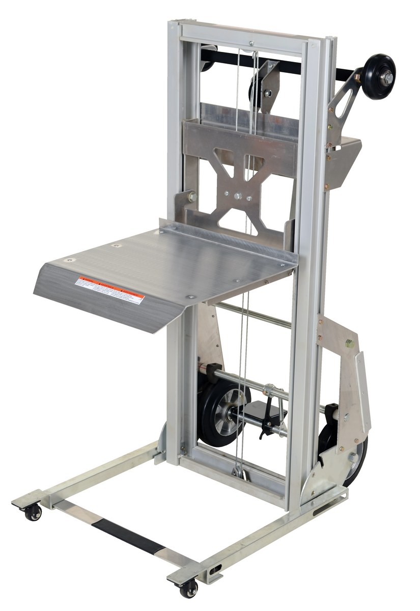 Portable Aluminum Load Lifter is durable, lightweight, and constructed of corrosion resistant aluminum. Ideal in shipping and receiving areas to load and unload pallet racking and to move parts. This unit folds up and down for compact storage and easy transportation. Ultra low profile design with ramp is great for appliance, office, and furniture stores. Features a foot actuated brake. Uniform capacity is 200 lbs.