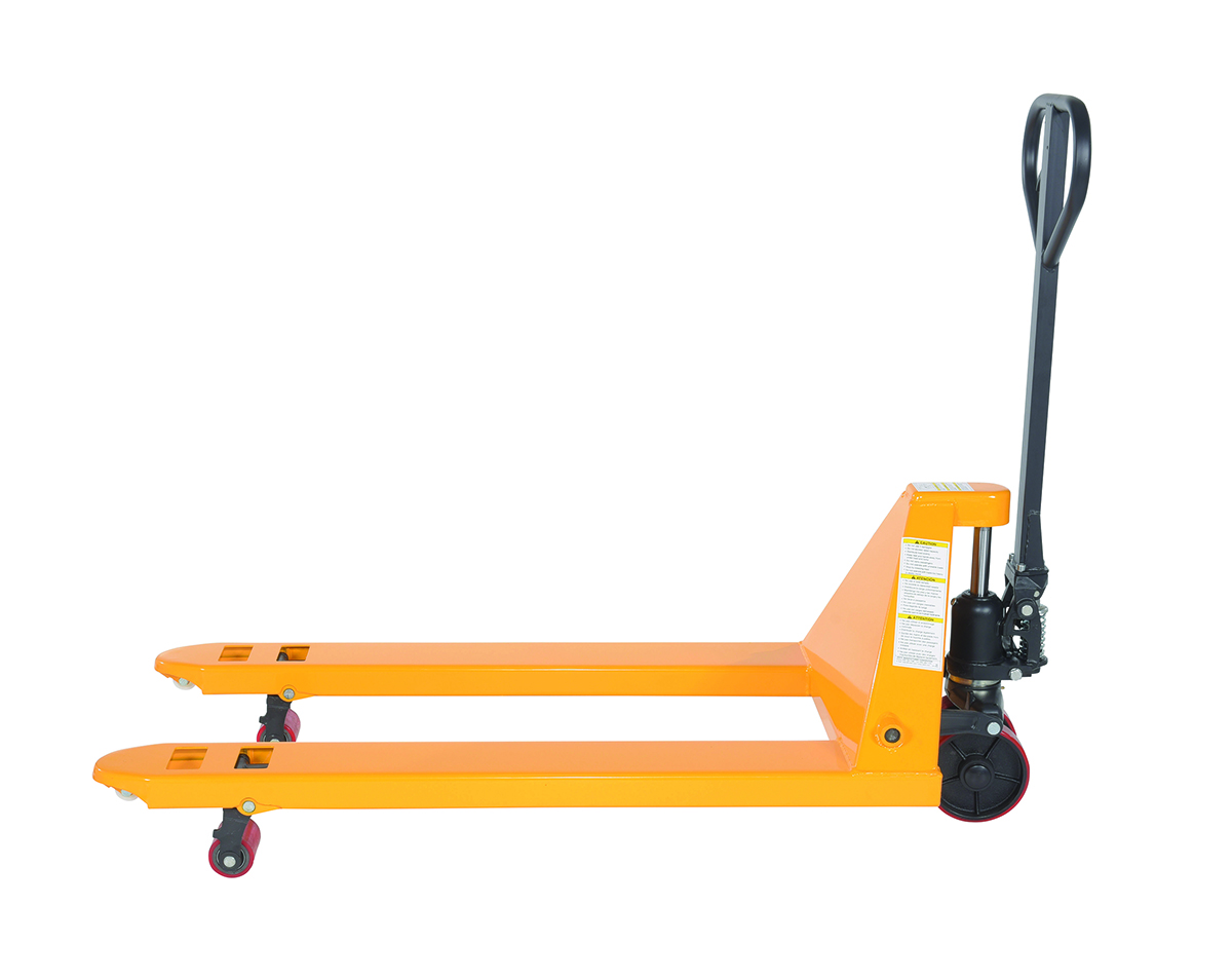 Proven ergonomic design has been time-tested for providing years of reliable usable. An economical way for one person to move heavy pallet loads without the use of a fork truck. Ergonomic design requires only 75 lbs. of pulling force when fully loaded. Spring loaded loop handle automatically returns to vertical position when not in use. Chrome-plated hydraulic pump piston for long seal life. Individual fork width is 7".