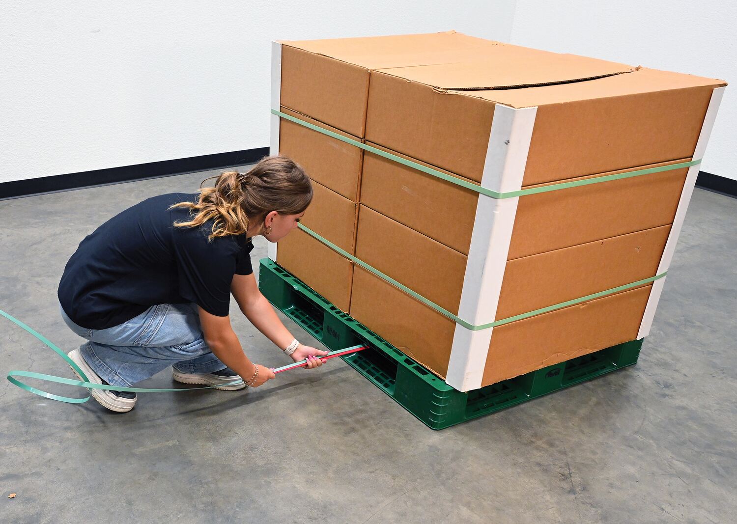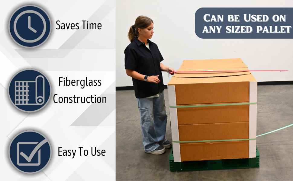 • Decreases the time it takes to manually strap pallets