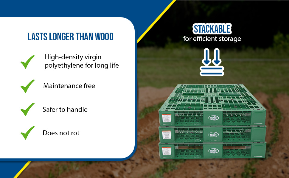 PLP2-4840-GREEN PLP2-4840-GREENHigh Density Polyethylene Pallet 39-1/2 In. x 47-3/8 In. x 6 In. 8000 Lb. Capacity GreenUniform Floor (static) Capacity (lb.): 8000