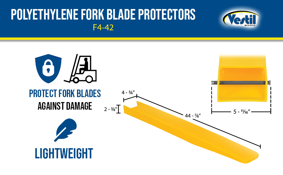 F5-42 F5-42Polyethylene Fork Blade Protectors 5 In. x 42 In. YellowUse with Fork Blades Width/Length/Height (in.): 5 x 42 x 2