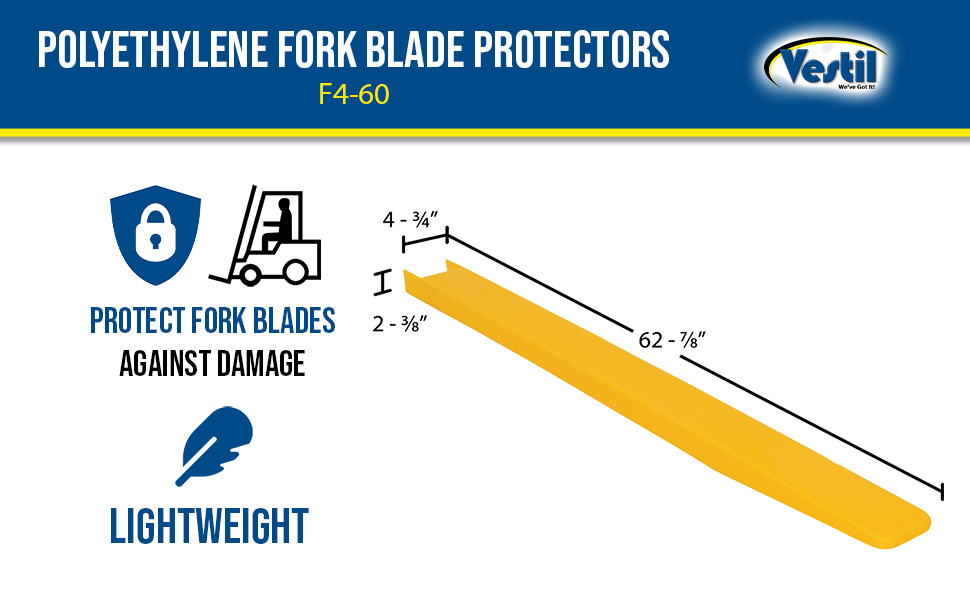 F4-60 F4-60Polyethylene Fork Blade Protectors 4 In. x 60 In. YellowUse with Fork Blades Width/Length/Height (in.): 4 x 60 x 2
