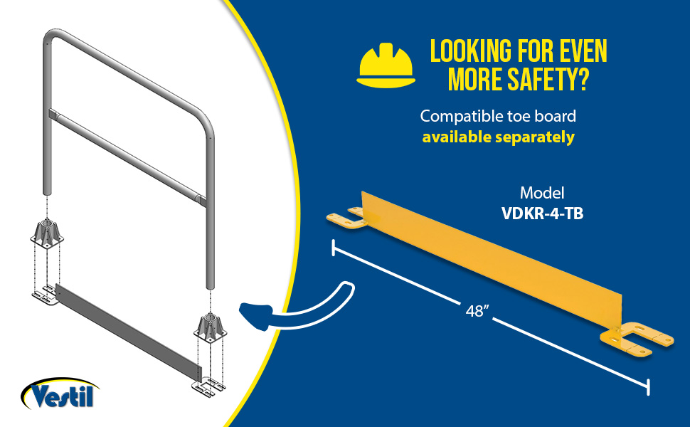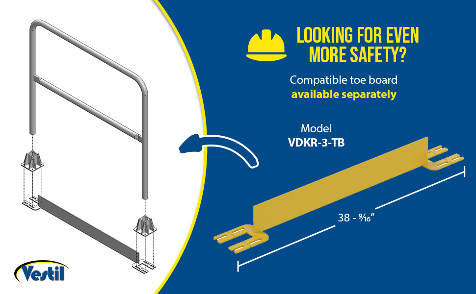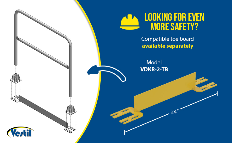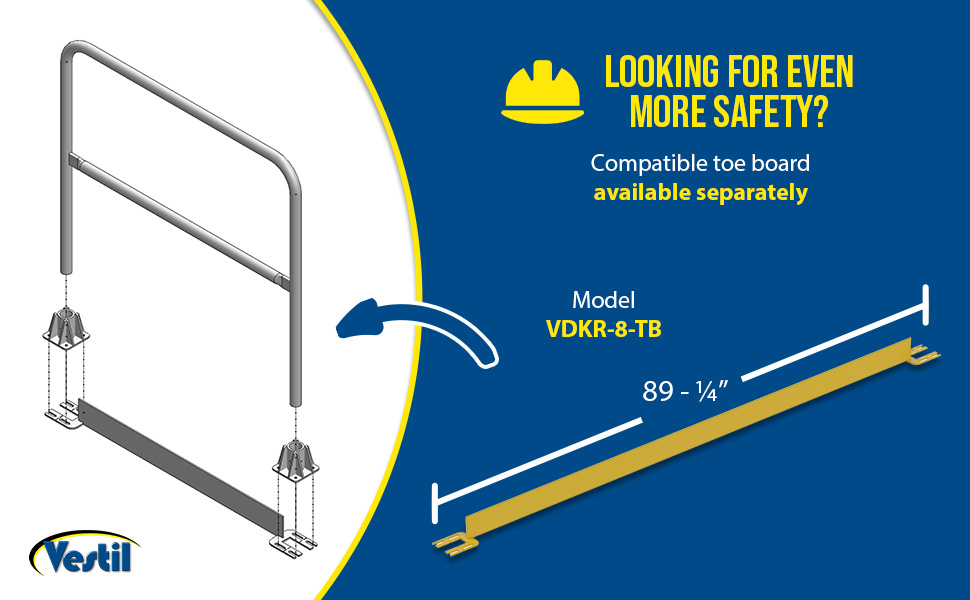 VDKR-2-TB VDKR-2-TB Steel Toe Board for Pipe Safety Railing 2 Ft. Length Yellow 90 Days Limited Warranty 7