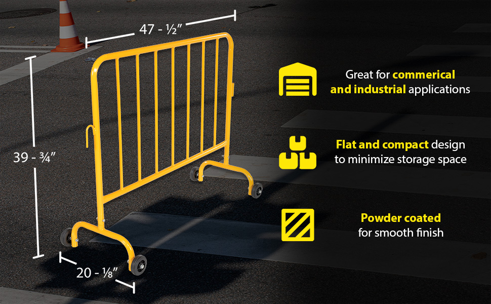 PRAIL-102-HD-Y-WW PRAIL-102-HD-Y-WWSteel Heavy Duty Crowd Control Interlocking Barrier with Wheeled Feet 101-3/4 In. Length YellowVertical Bar Spacing (in.): 5-3/4
