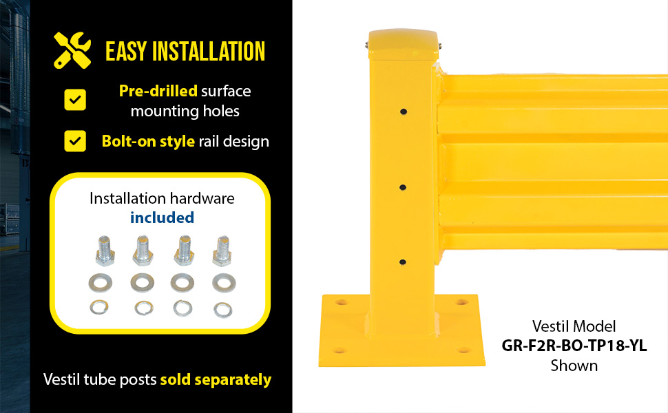 GR-F2R-BO-10-YL GR-F2R-BO-10-YLSteel 2 Ribbed Bolt On Style Guard Rail 114 In. Length YellowMounting Post (qty.): 2
