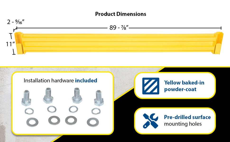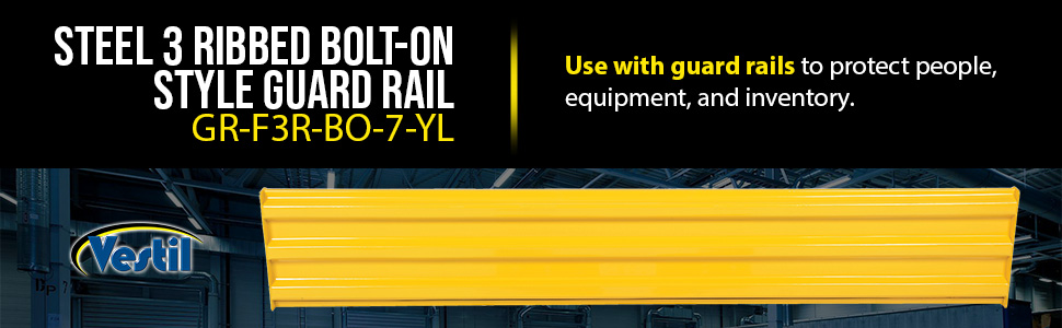 GR-F3R-BO-3-YL GR-F3R-BO-3-YLSteel 3 Ribbed Bolt On Style Guard Rail 29.875 In Length YellowImpact Capacity (Lbs.): 10,000