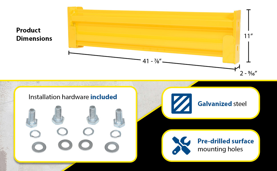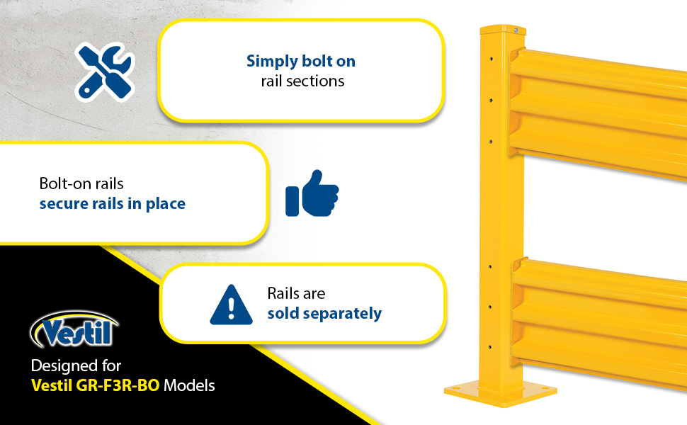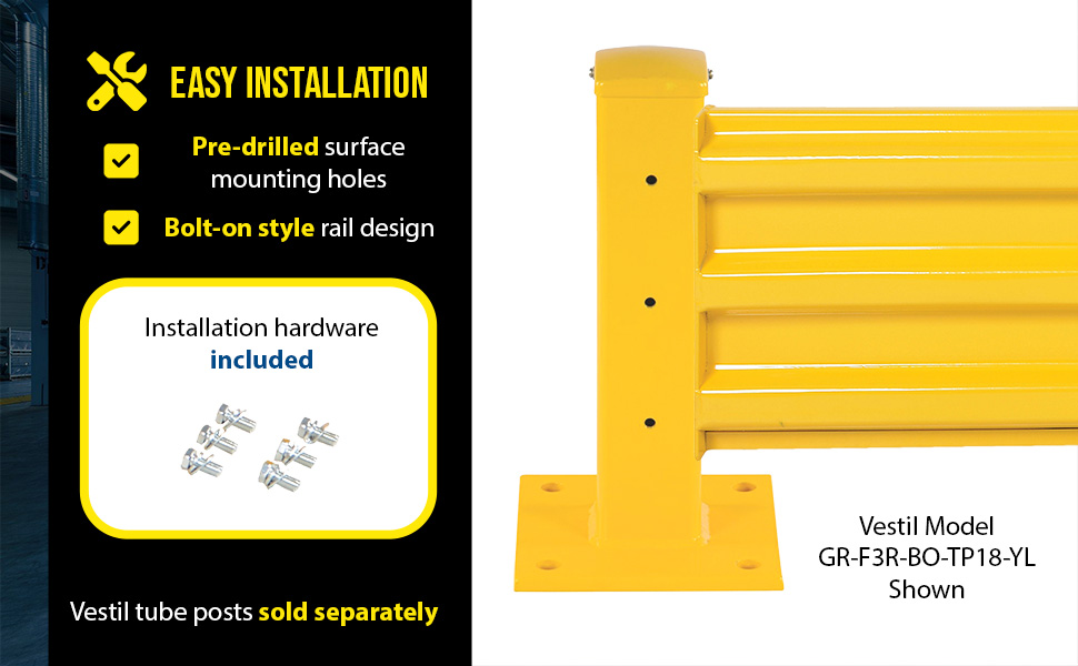 GR-F3R-BO-4-YL GR-F3R-BO-4-YLSteel 3 Ribbed Bolt On Style Guard Rail 41.875 In. Length YellowImpact Capacity (Lbs.): 10,000