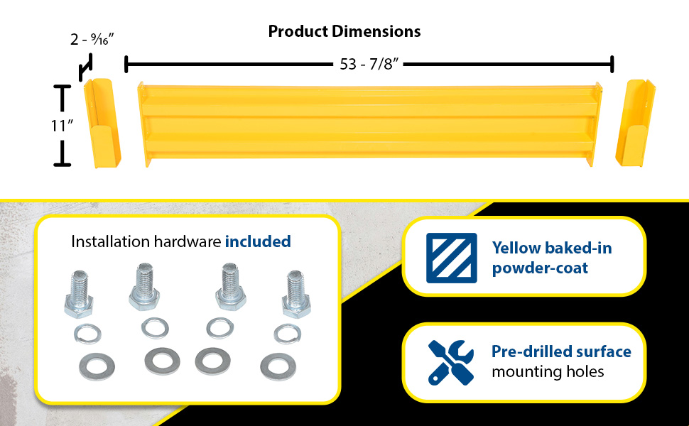 GR-F3R-BO-5-YL GR-F3R-BO-5-YLSteel 3 Ribbed Bolt On Style Guard Rail 53.875 In. Length YellowImpact Capacity (Lbs.): 10,000