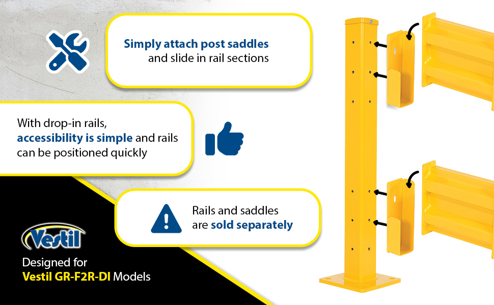 GR-F2R-DI-7-YL GR-F2R-DI-7-YLSteel 2 Ribbed Drop In Style Guard Rail 78 In. Length YellowMounting Post (qty.): 2