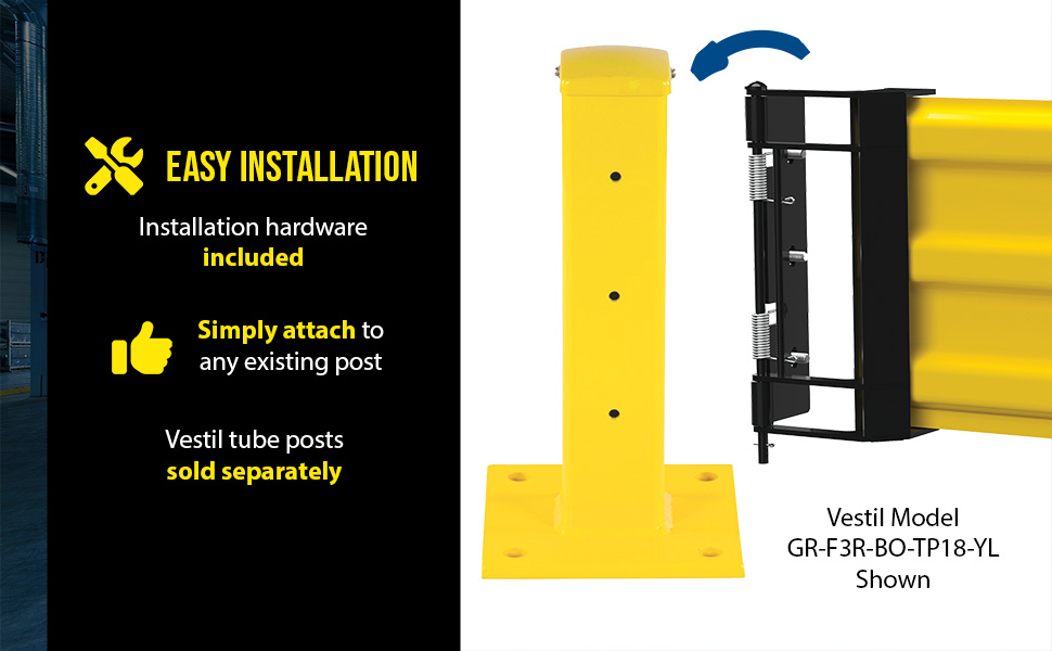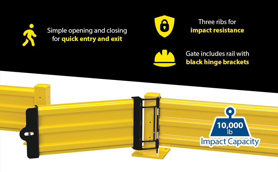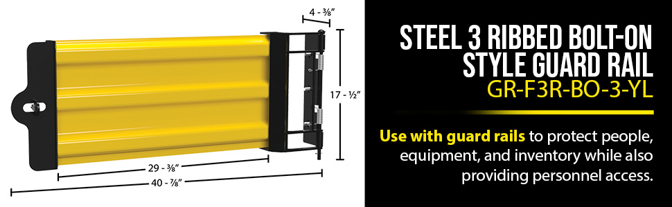 GR-F3R-GBS-3-YL GR-F3R-GBS-3-YLSteel Hinged Guard Rail 29.875 In Length 3 Ribbed Gate YellowImpact Capacity (Lbs.): 10,000