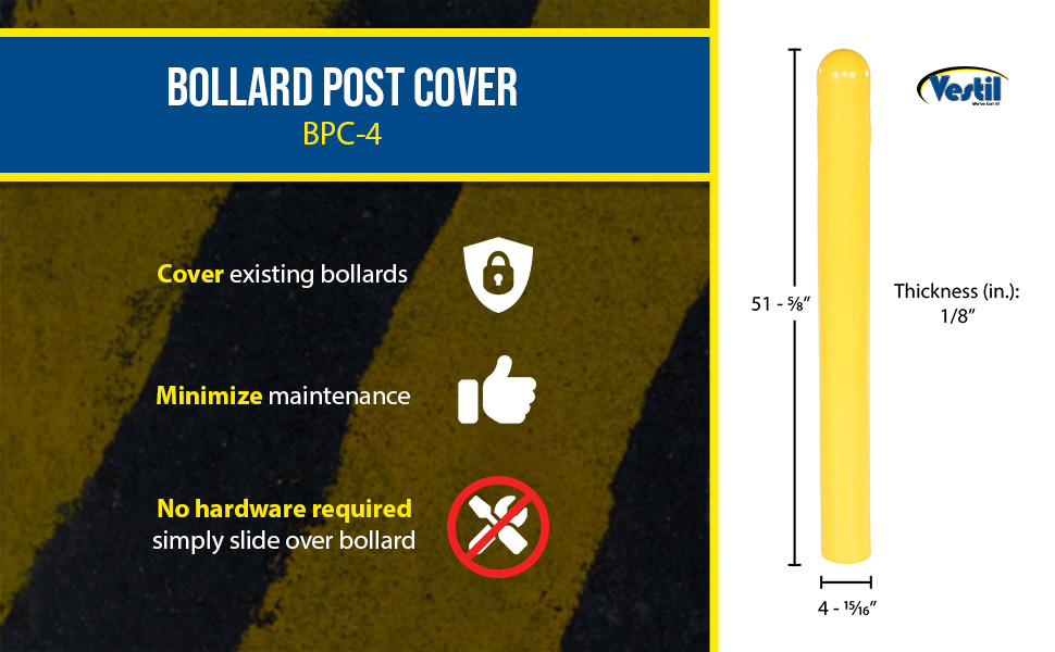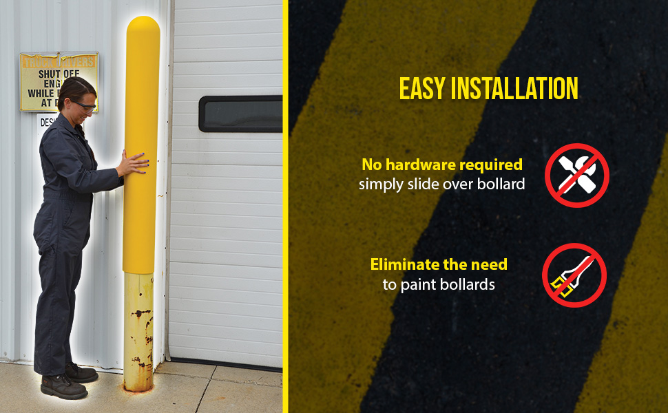 This durable poly sleeve will minimize maintenance and improve appearance. Covers are 1/8" thick. Units slide over existing bollards. No hardware needed.