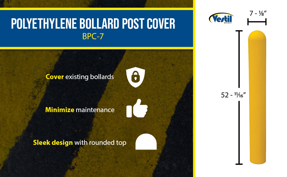 BPC-7 BPC-7Low Density Polyethylene Bollard Post Cover 7-1/8 In. x 7-3/8 In. x 52 In. YellowInside Diameter (in.): 7-1/8