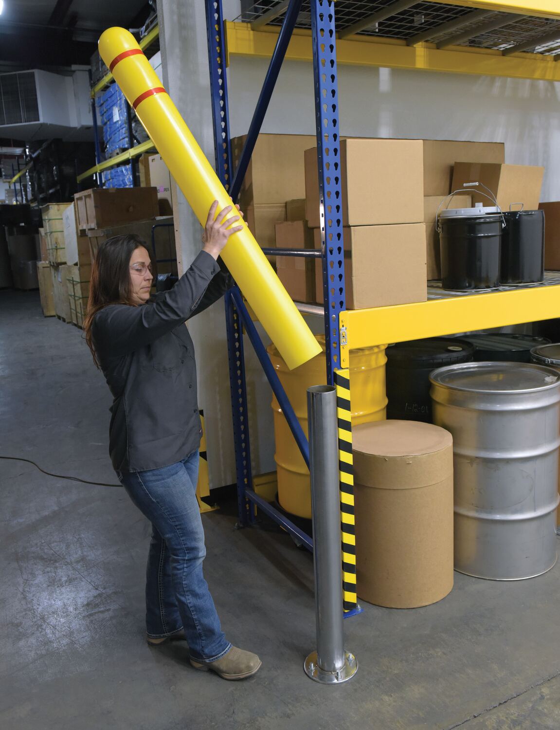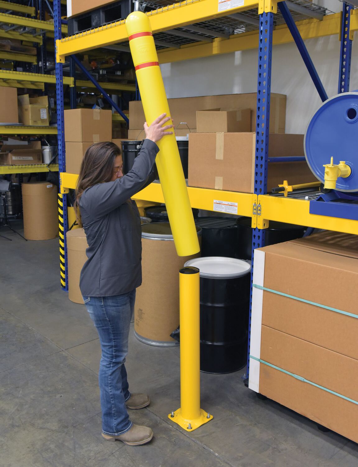 BPC-7L BPC-7LLow Density Polyethylene Bollard Post Cover Red Tape 7-1/8 In. x 7-1/8 In. x 52-11/16 In. YellowInside Diameter (in.): 7-1/8