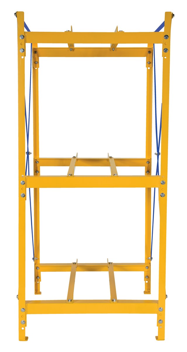 The Drum Storage Racks provide orderly storage for 30 & 55 gallon drums. Constructed of heavy duty steel angle and cross bracing is provided for extra strength. The uprights keep drums from accidental roll off and allows forklift entry from the front or rear. Four (4) anchor pads help to prevent tipping. Color is yellow with blue cross braces. Shipped knock-down, assembly required.