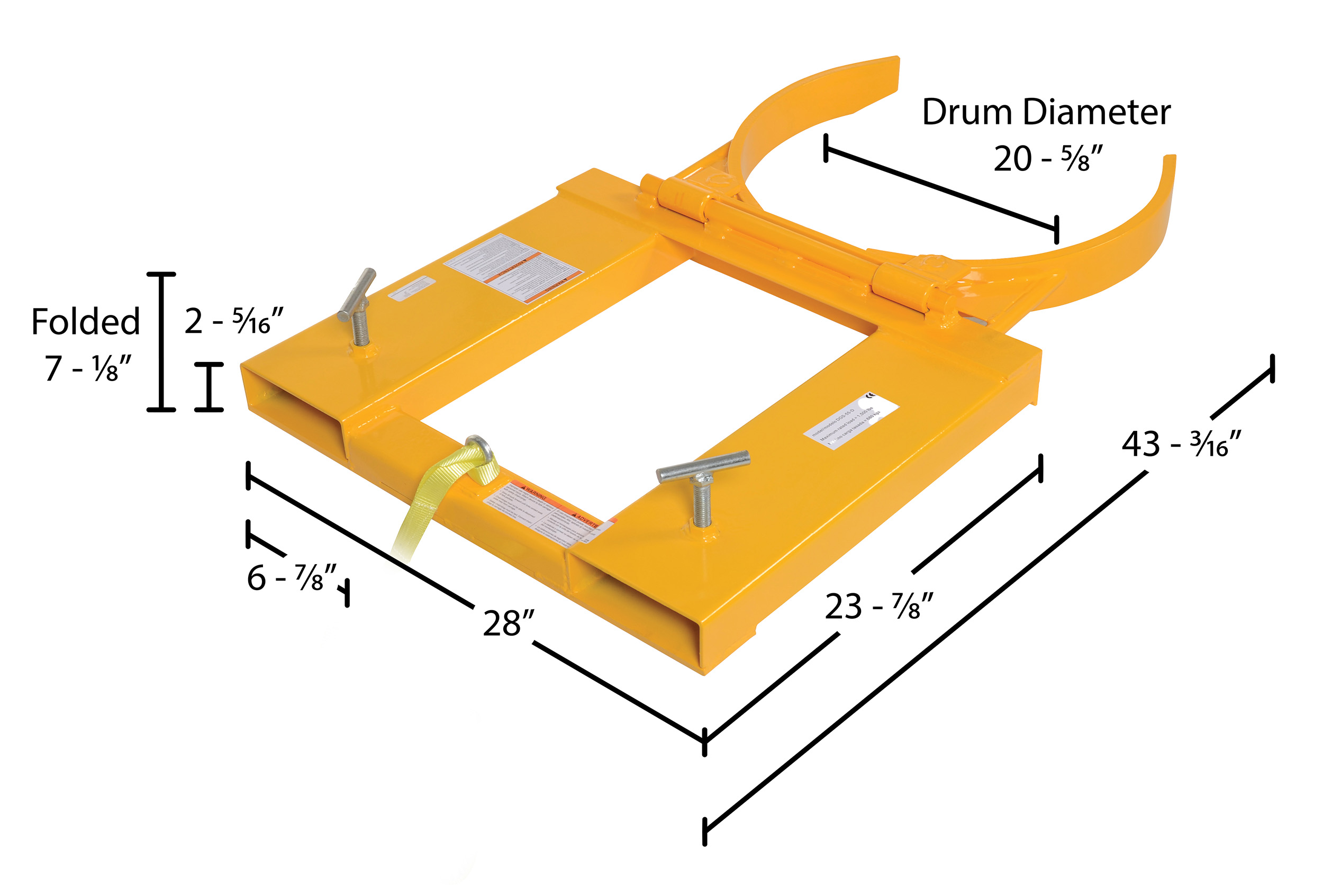 DGD-55-D DGD-55-DSteel Deluxe Double Drum Gripper 55 Gallon 43-5/8 In. x 46-1/4 In. x 9-3/8 In. 2000 Lb. Capacity YellowUniform Capacity (lb.): 2,000
