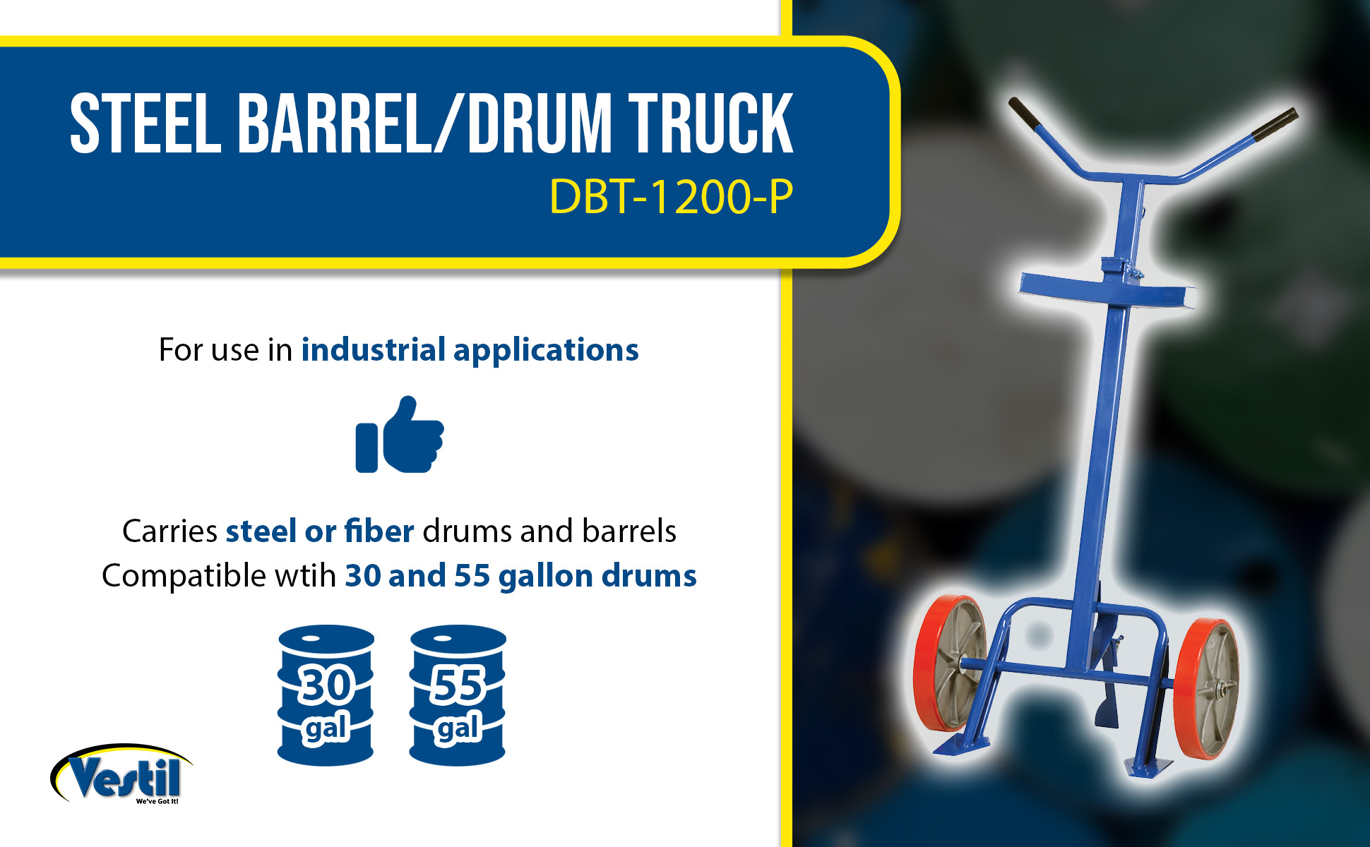 DBT-1200 DBT-1200Steel Barrel/Drum Truck with Rubber On Steel Wheels 20-1/4 In. x 29 In. x 60 In. 800 Lb. Capacity BlueUniform Capacity (lb.): 800