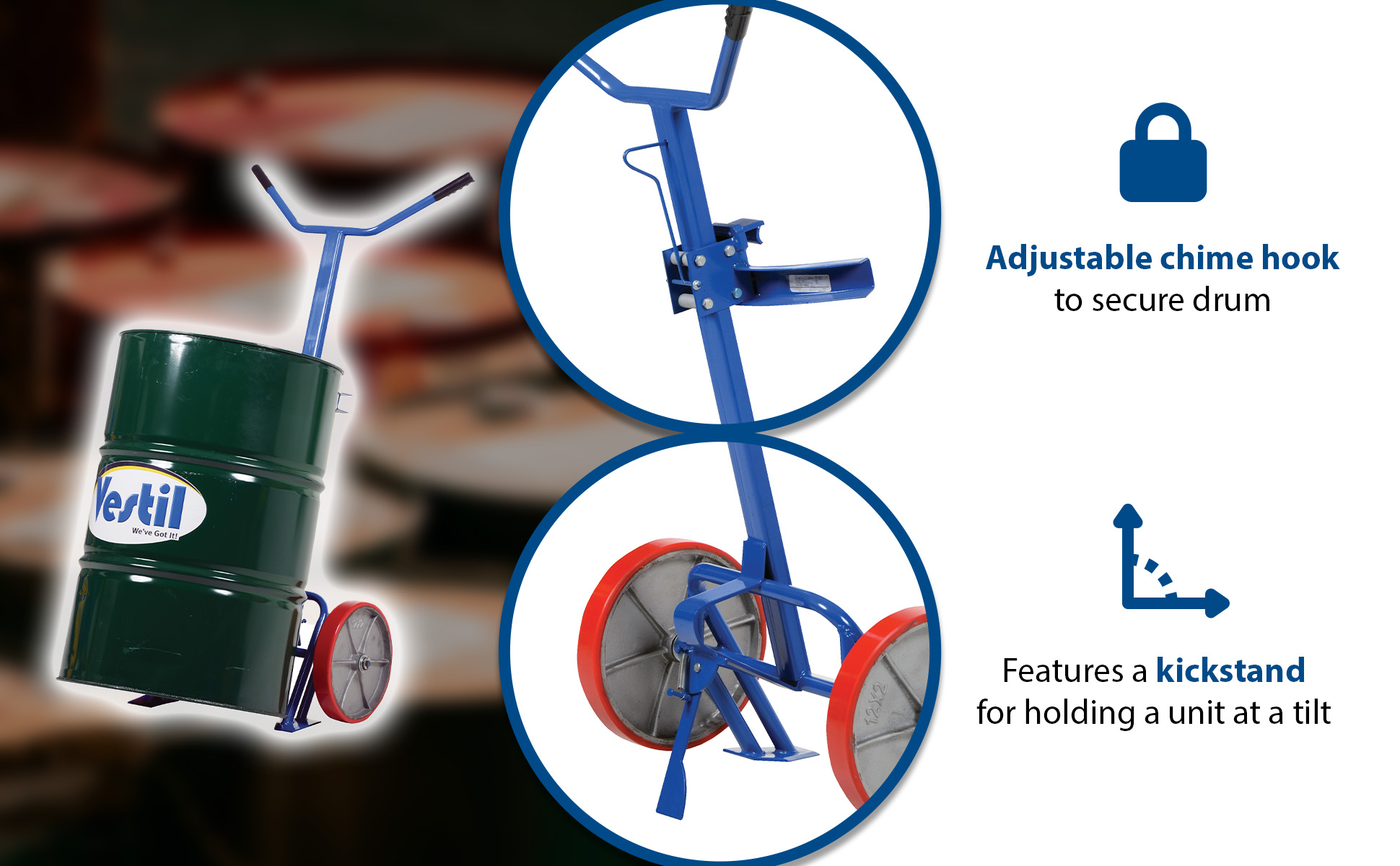 DBT-1200-P DBT-1200-PSteel Barrel/Drum Truck with Poly On Steel Wheels 20-1/4 In. x 29 In. x 60 In. 800 Lb. Capacity BlueUniform Capacity (lb.): 800