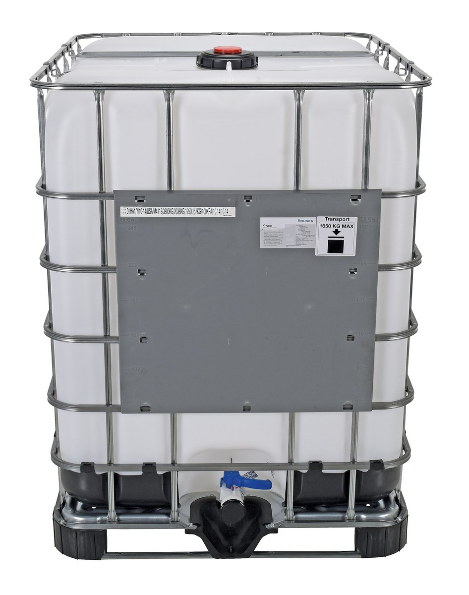 Space-savings storage containers are great for multi-trip applications. Designed for storage of both hazardous and nonhazardous contents (not to be used with flammable material such as gasoline). Easy to fill, stack and load. Hot-dipped galvanized steel cage is consistent with Food Code requirements for use in non-direct food contact environments. FDA compliant steel cage is hot-dipped galvanized. Pallet base is made from both steel and plastic. Includes inner storage tank made from white plastic with UV-blocking additive. Includes 2" butterfly valve with a durable, synthetic fluorocarbon rubber gasket. Top fill cap is 6" diameter with 2" bung. Complete units are FDA compliant, DOT certified, and UN approved. UN 31HA1/Y.