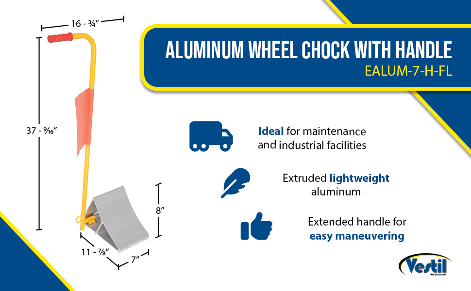EALUM-7-H-FL EALUM-7-H-FLAluminum Wheel Chock with Handle and Flag YellowUsable Chock Width (in.): 7