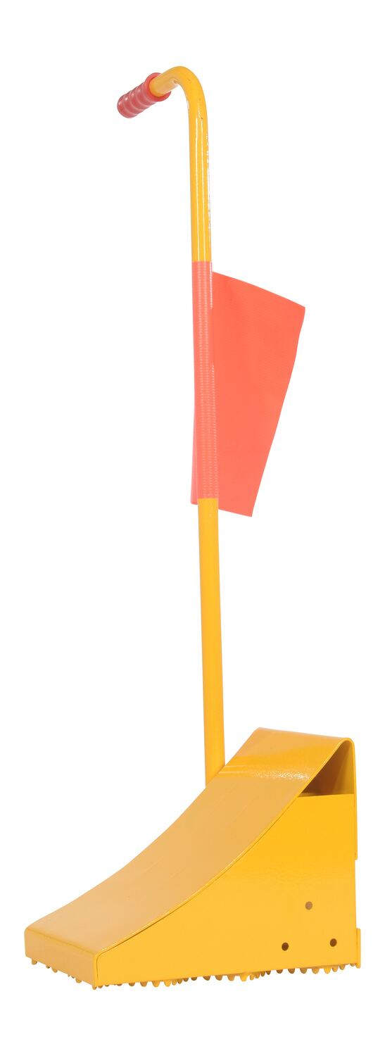 FAB-10-ERGO-FL FAB-10-ERGO-FLFabricated Steel Wheel Chock With Ergonomic Handle and Flag YellowUsable Chock Width (in.): 9-13/16