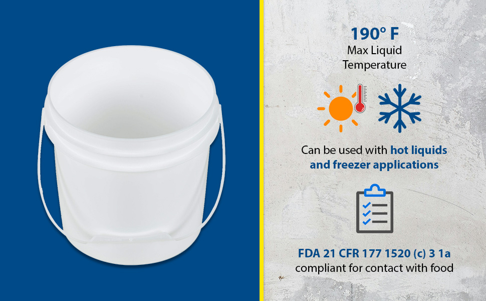 PAIL-54-PWS PAIL-54-PWSHigh Density Polyethylene Open Head Pail with Steel Handle 11-15/16 In. x 11-15/16 In. x 14-1/2 In. 5 Gallon WhiteUniform Capacity (gal.): 5