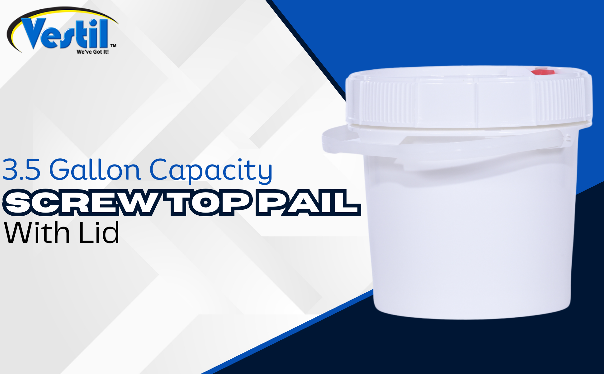 PAIL-SCR-35-W PAIL-SCR-35-WHigh Density Polyethylene Screw Top Pail and Lid 12-5/8 In. x 12-5/8 In. x 12-3/16 In. 3-1/2 Gallon WhiteUniform Capacity (gal.): 3.5