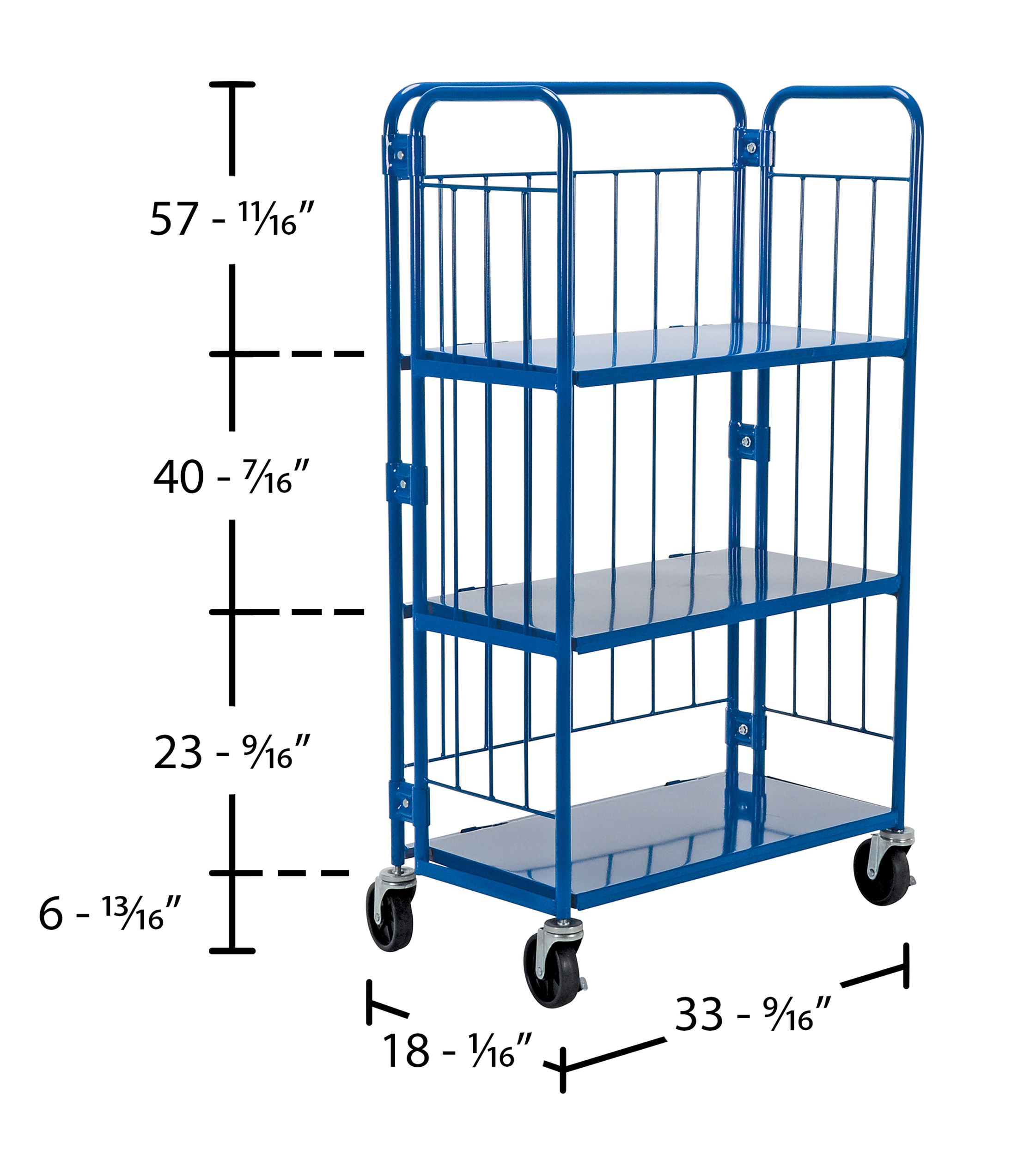ROL-1834-3 ROL-1834-3Steel Foldable/Nestable Roller Container 3 Shelf 18 In. x 34 In. x 59 In. 990 Lb. Capacity BlueTotal Uniform Capacity (lb.): 990
