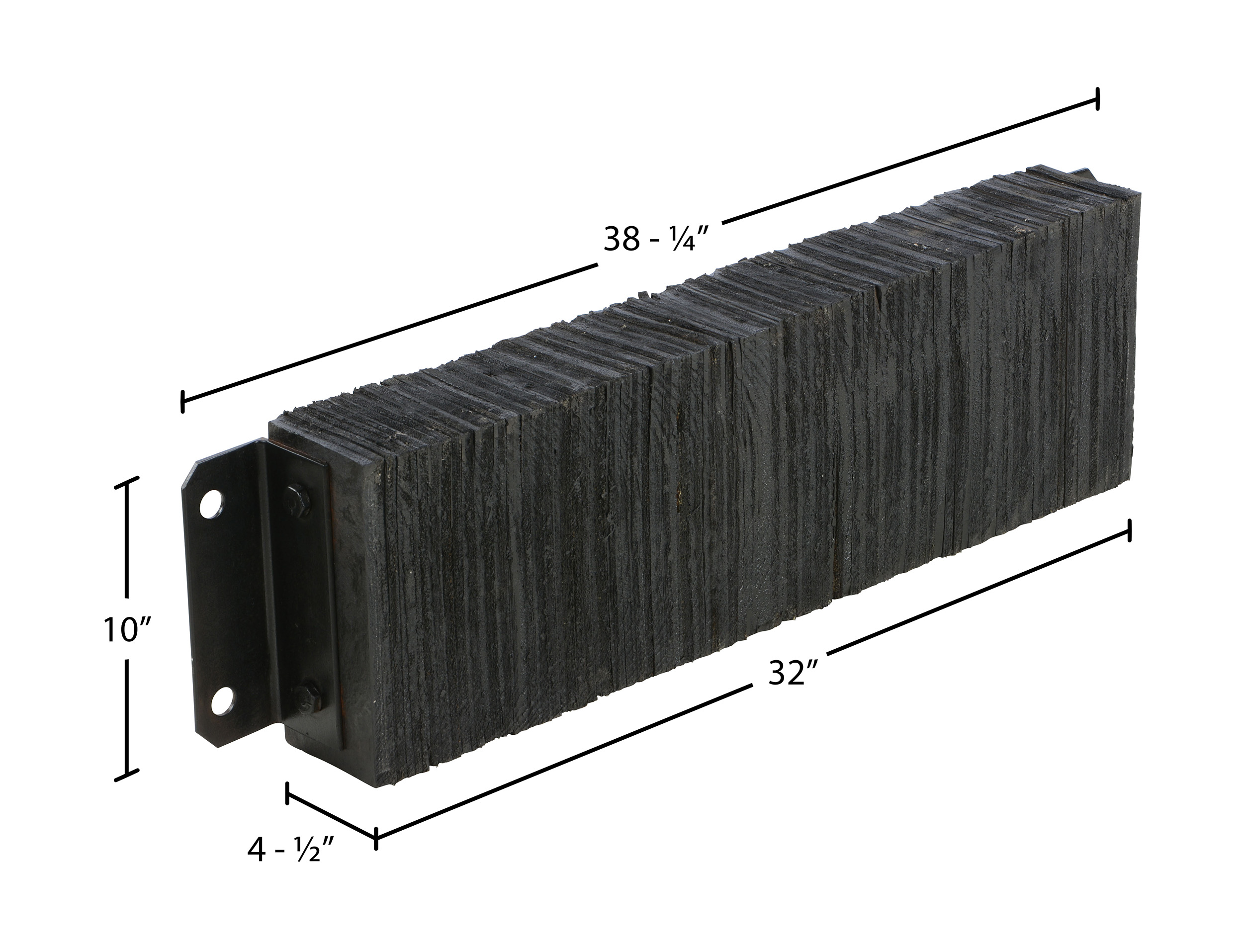 The laminated Dock Bumper provides durable, economical protection for loading docks and trailers. This unit is constructed of fabric reinforced rubber from recycled truck tires. The pads are laminated between painted structural angles and held together with steel tie rods. The width is bolt hole center to bolt hole center. Installation hardware sold separately.