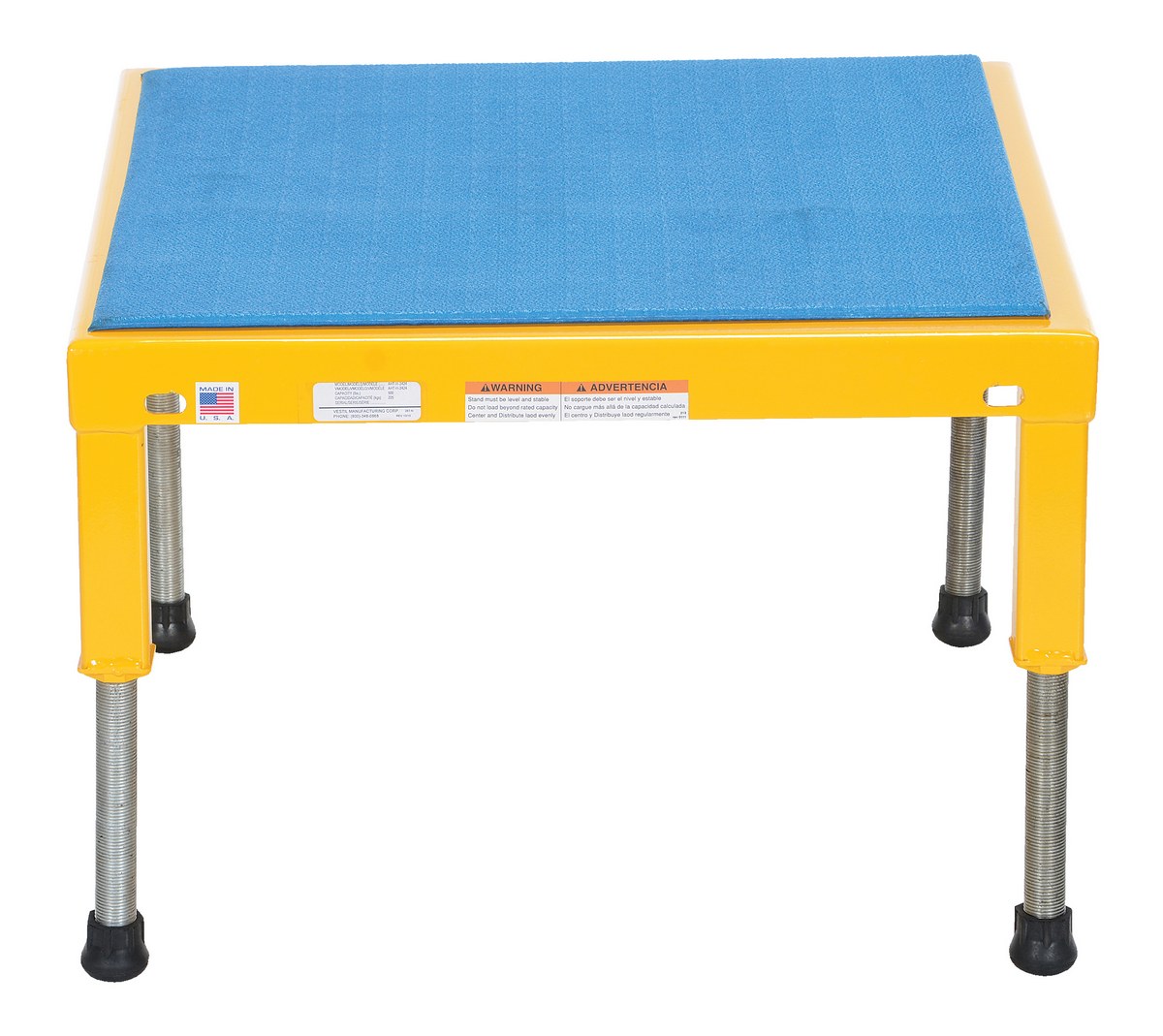 The adjustable work-mate stand minimizes fatigue by elevating workers to heights that are comfortable and ergonomically correct. Especially useful when multiple shift employees operate the same piece of machinery. The ergonomic matting deck style provides comfort for the operator who stands all day. The height of each leg can be adjusted individually to ensure proper working height.
