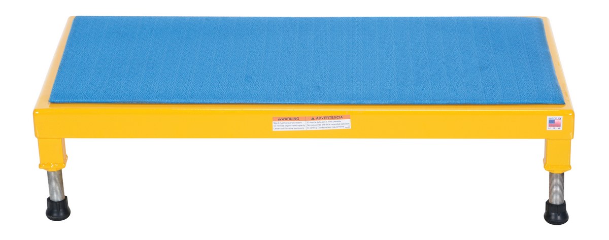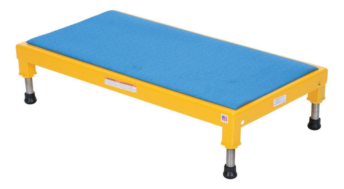 The adjustable work-mate stand minimizes fatigue by elevating workers to heights that are comfortable and ergonomically correct. Especially useful when multiple shift employees operate the same piece of machinery. The ergonomic matting deck style provides comfort for the operator who stands all day. The height of each leg can be adjusted individually to ensure proper working height.