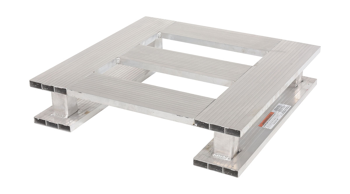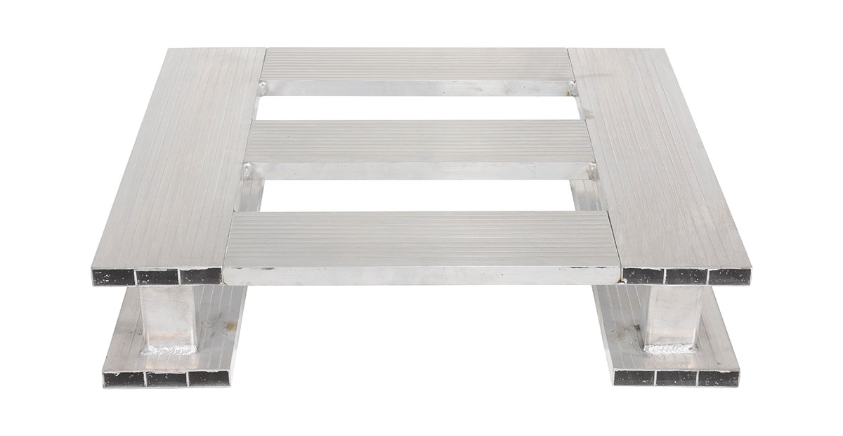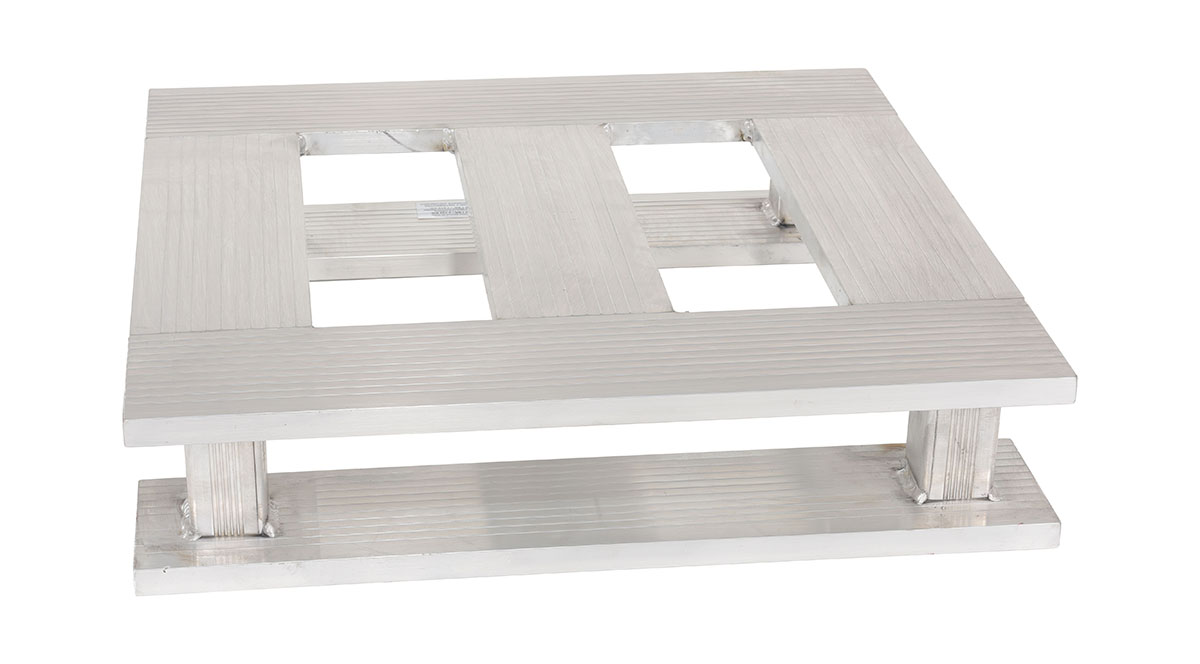 An aluminum half pallet is a great asset for a variety of industries. With the half pallet design, items can be chosen and fitted to a pallet much closer to their size. This utilizes and maximizes space during shipping and floor space during any storage. The open design enables quick and simple cleaning, while the skid bottom provides quick access.