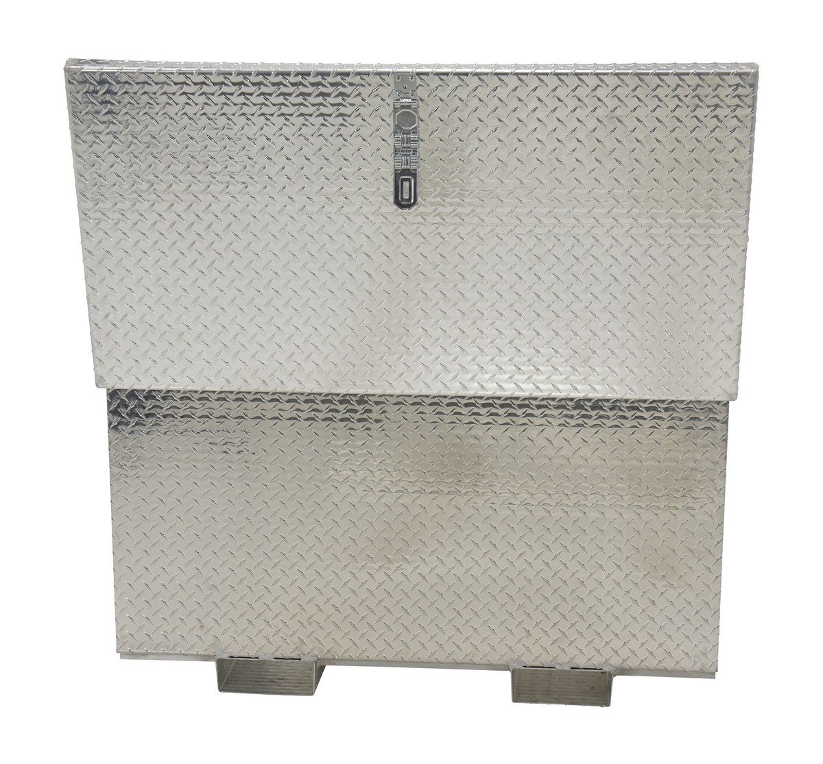 The Aluminum portable toolbox is excellent for storing and transporting equipment. The heavy duty welded aluminum tread plate construction is designed to tolerate the toughest of environments. Additional features also include ergonomically friendly carrying handles on each end for smooth manual transporting and a hinged lid which includes a lockable double hinged hasp for added security. Fork pockets are attached to the units underbelly for lifting and maneuvering between areas.