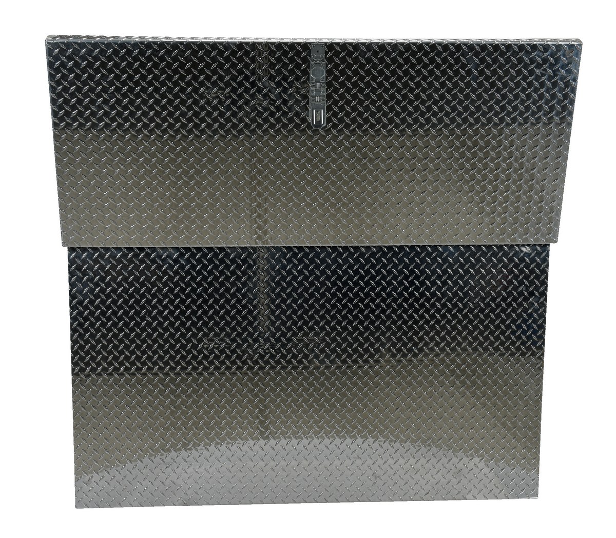 The Aluminum portable toolbox is excellent for storing and transporting equipment. The heavy duty welded aluminum tread plate construction is designed to tolerate the toughest of environments. Additional features also include ergonomically friendly carrying handles on each end for smooth manual transporting and a hinged lid which includes a lockable double hinged hasp for added security.